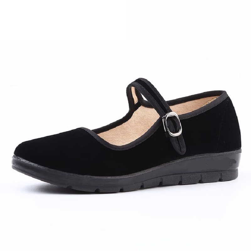 优选京布鞋女黑布鞋平p跟中跟软底防滑大码妈妈酒店工作上班跳舞.