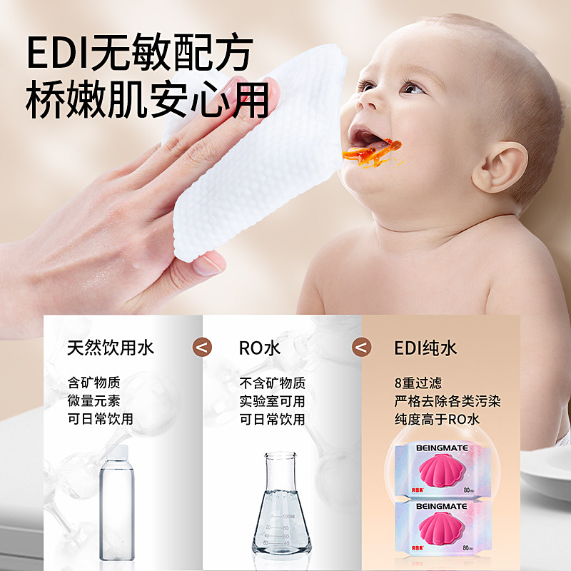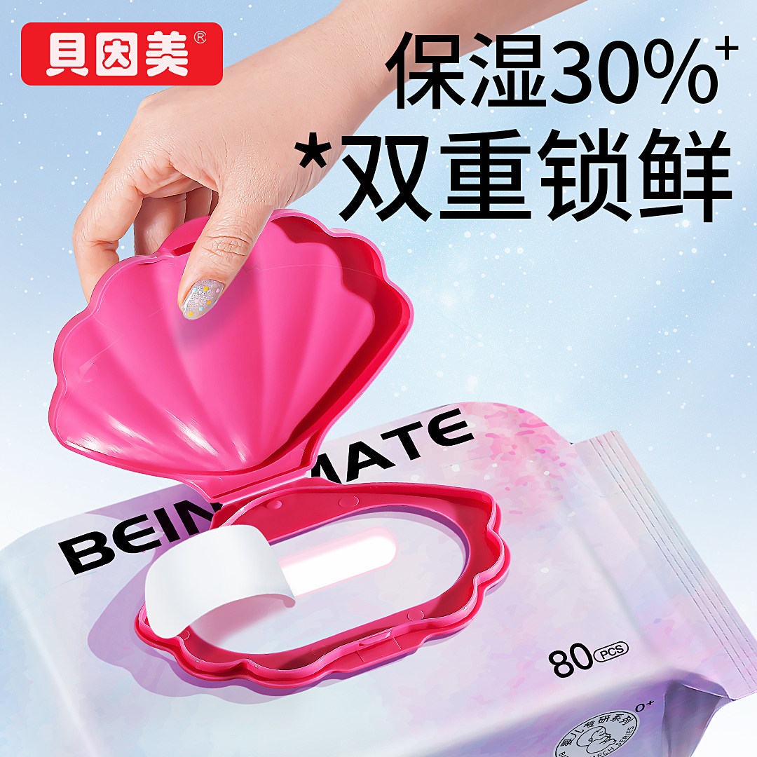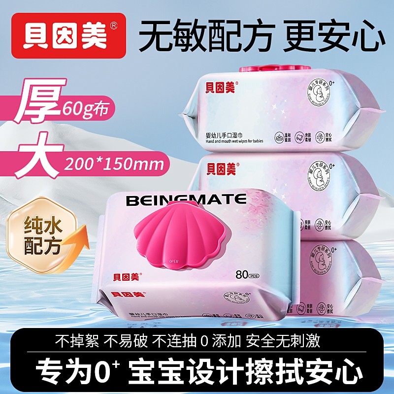 贝因美湿巾80抽家庭实惠装纯水婴幼儿专用湿纸巾清洁杀菌衣物保湿