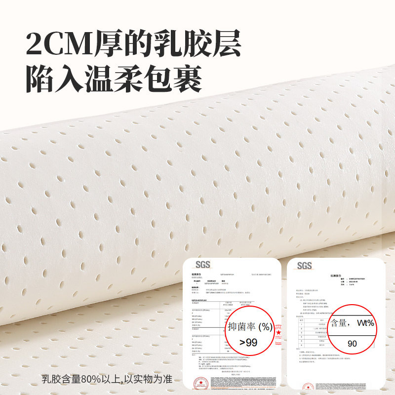 金橡树乳胶床垫5cm7.5cm泰国进口天然乳胶橡胶双人1.5/1.8米 悦享