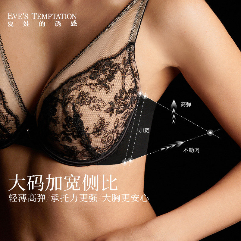夏娃的诱惑内衣女夏薄款大码全罩杯胸大显小软支撑性感蕾丝文胸罩