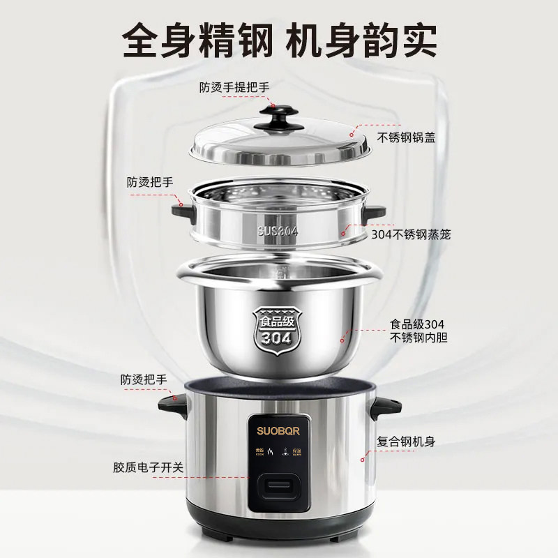 不锈钢电饭煲-4人小型智能电饭锅家用2L多功能蒸煮煮粥煮饭煲汤
