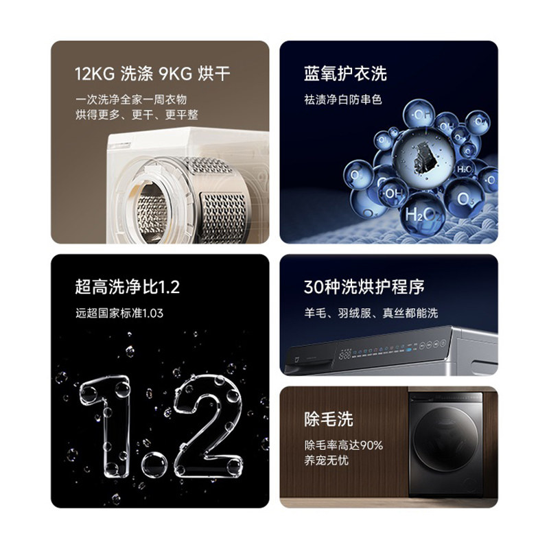 小米米家洗衣机Pro 蓝氧洗烘12kg大容量滚筒蓝氧护衣洗祛渍净白79