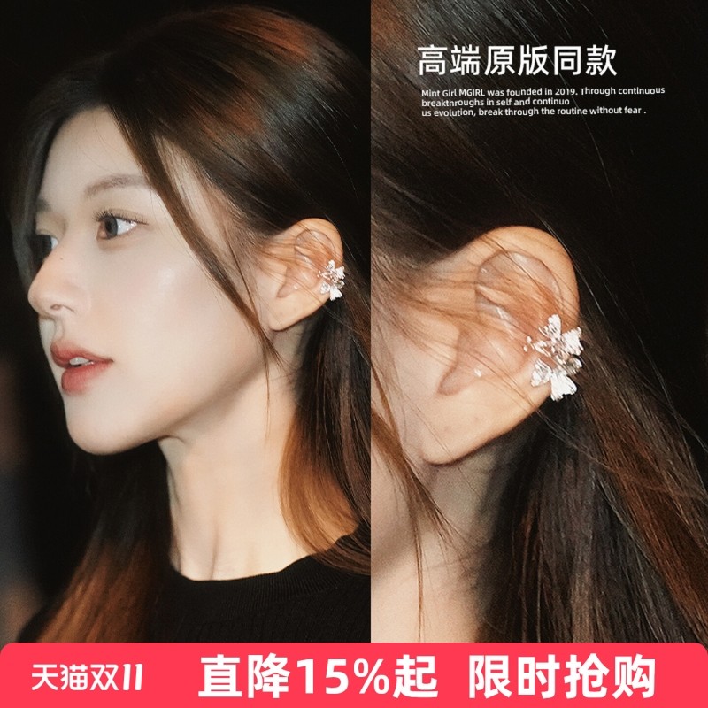 日本许我耀眼赵露思许妍同款花朵纹理耳环新中式无耳洞耳骨夹