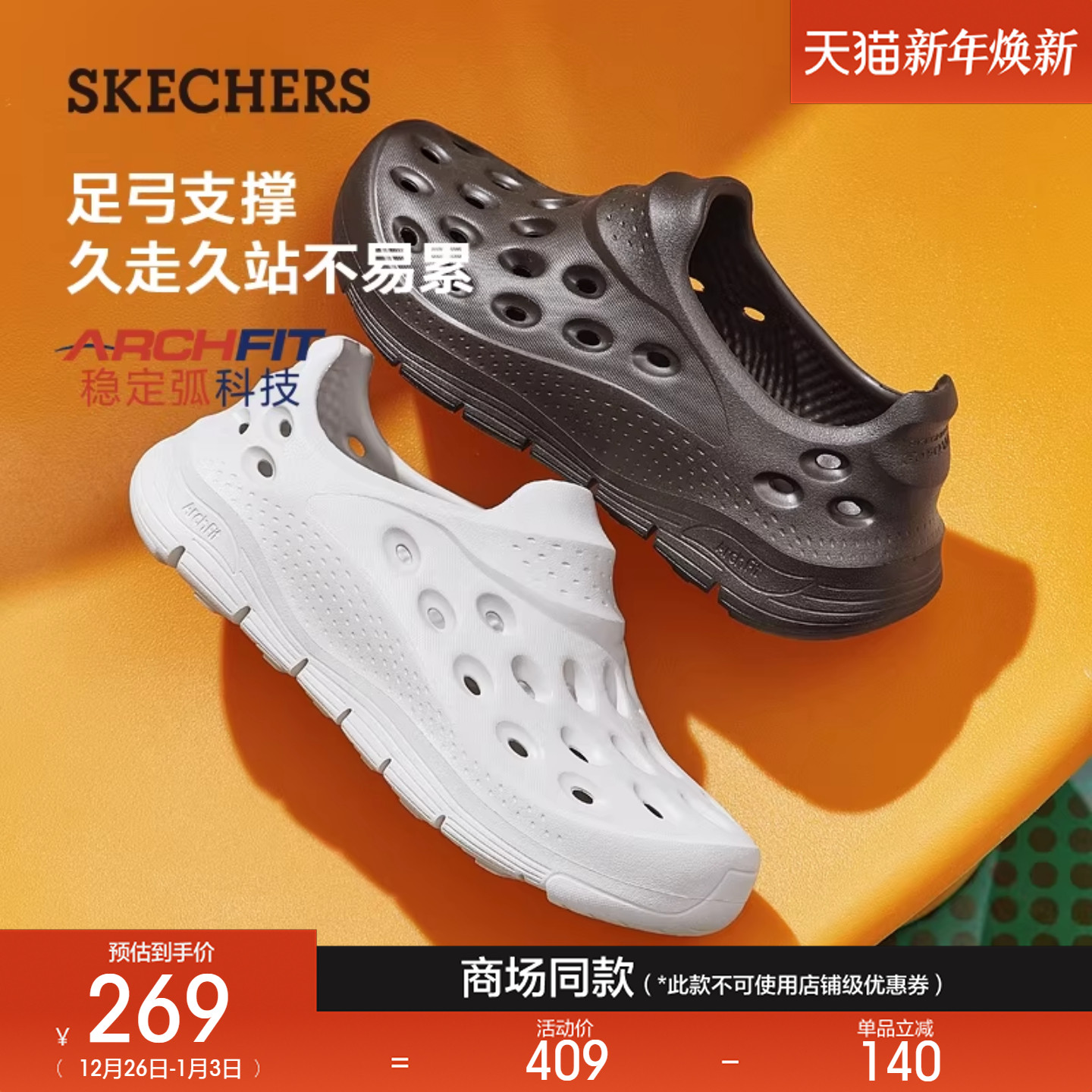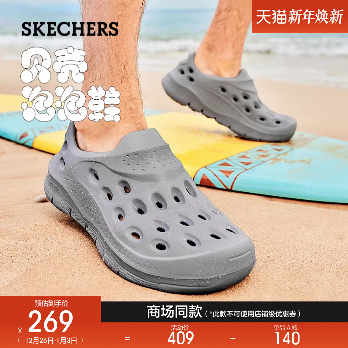 斯凯奇男鞋厚底耐磨洞洞鞋夏外穿沙滩鞋回弹凉鞋户外百搭包头拖鞋