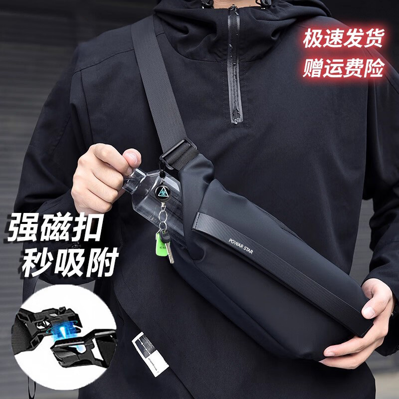 2025新款男士斜挎包防水运动单肩包休闲大容量胸包磁吸扣通勤时尚