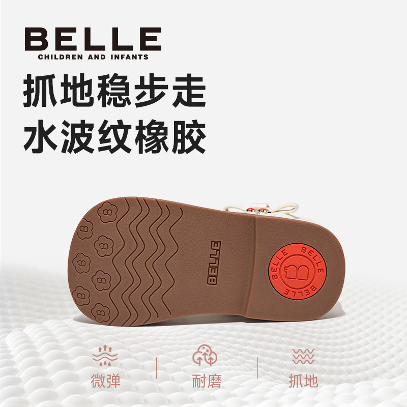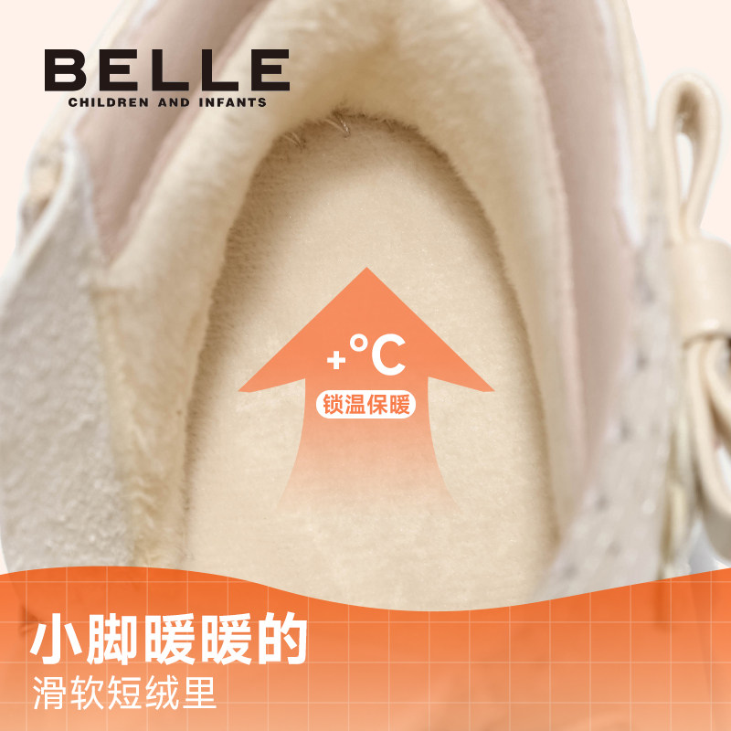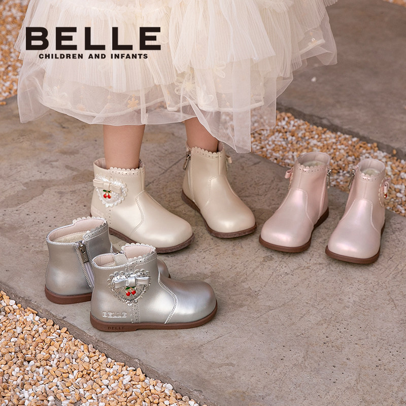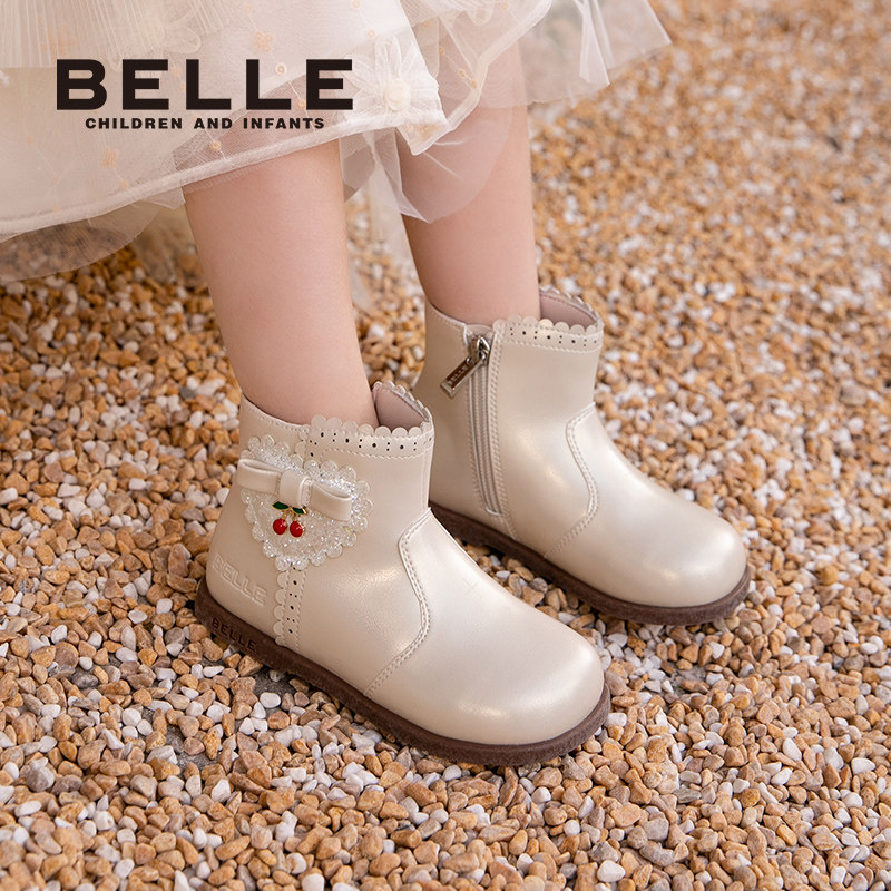 百丽童鞋小樱桃公主棉靴25冬新款女童棉靴加绒保暖时装靴儿童皮靴