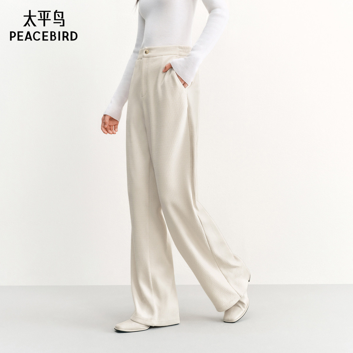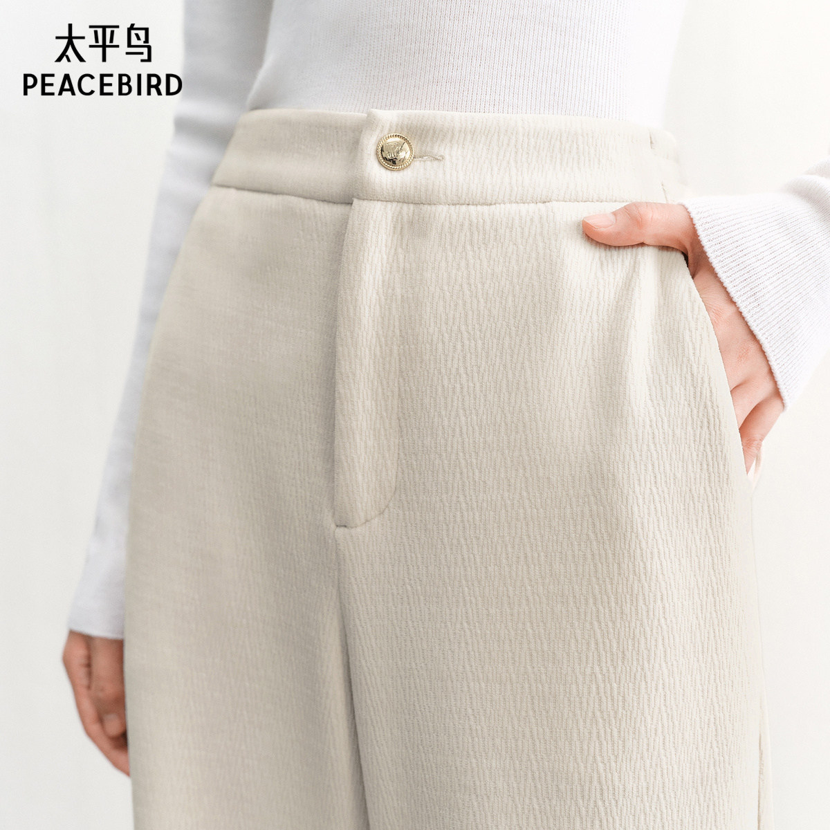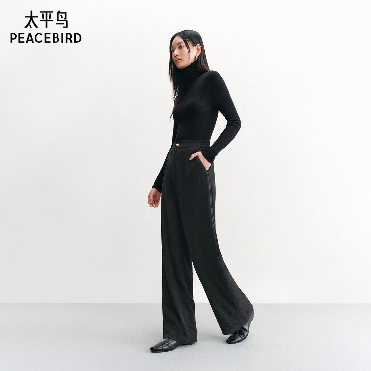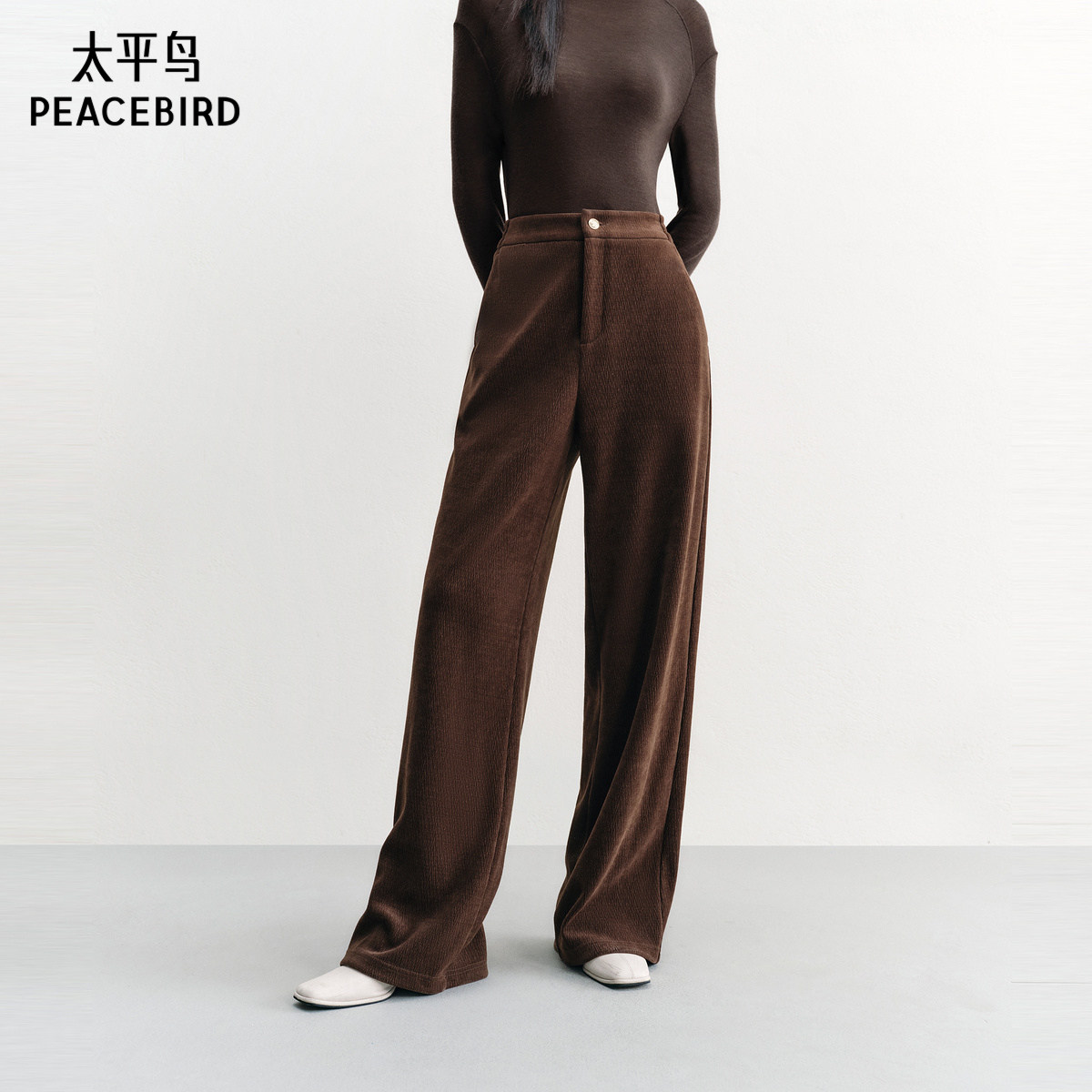太平鸟高腰雪尼尔直筒长裤年冬季款加厚保暖阔腿休闲裤子女