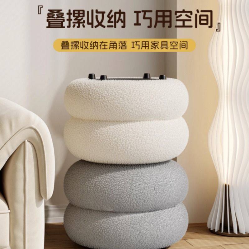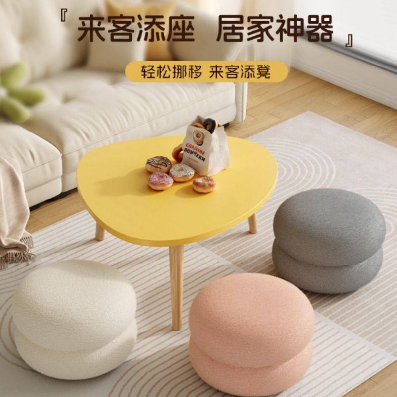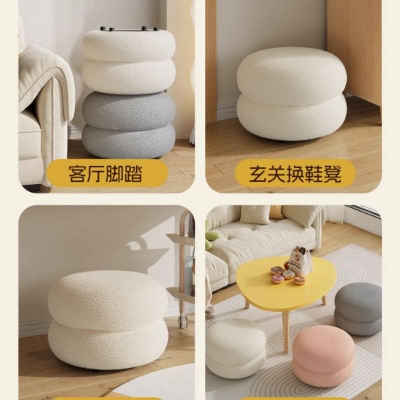 客厅小凳子羊羔绒板凳家用圆凳儿童沙发凳矮凳坐墩换鞋凳萌趣奶油