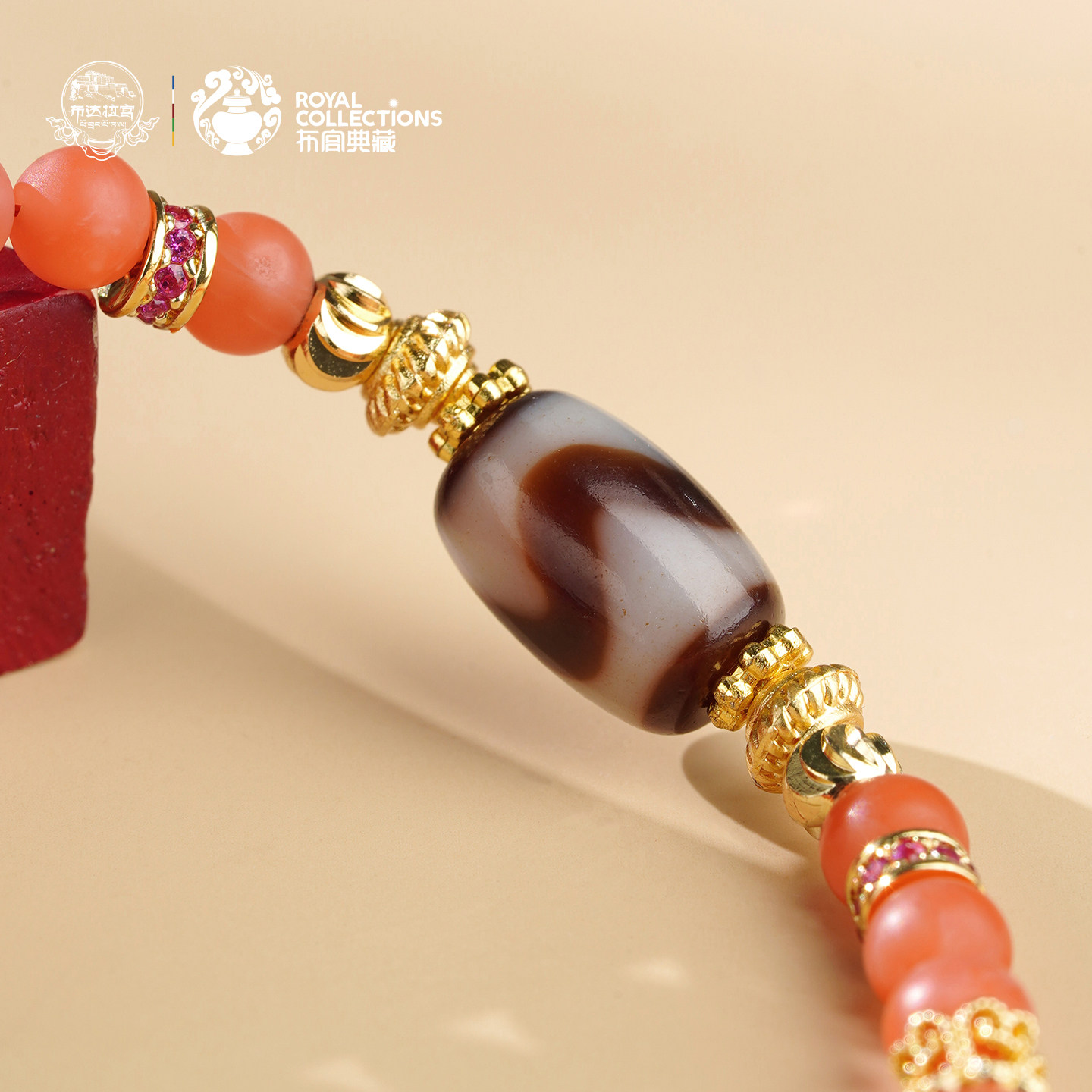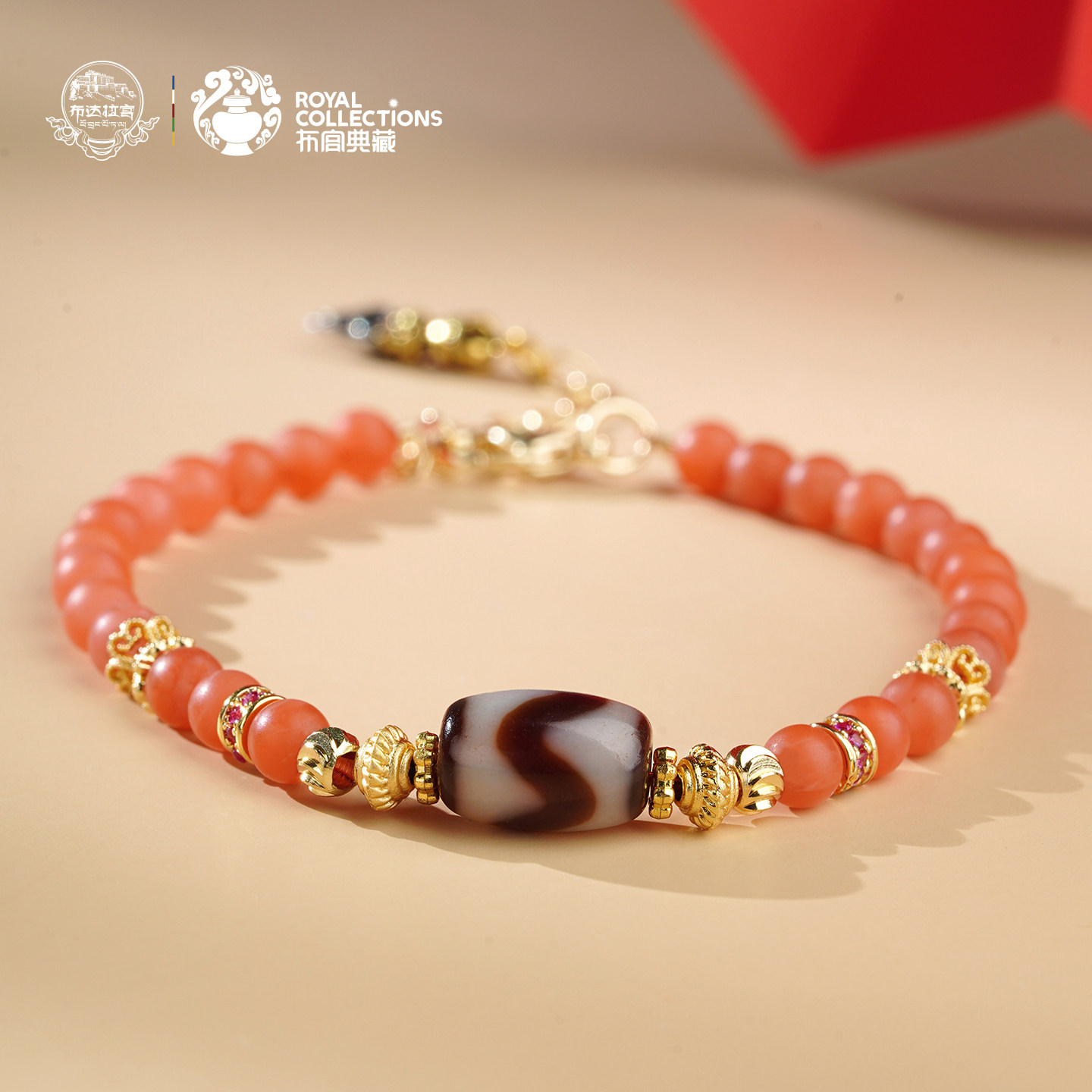 布达拉宫保山南红手串藏式小众本命年虎牙天珠玛瑙手链女款蜜蜡