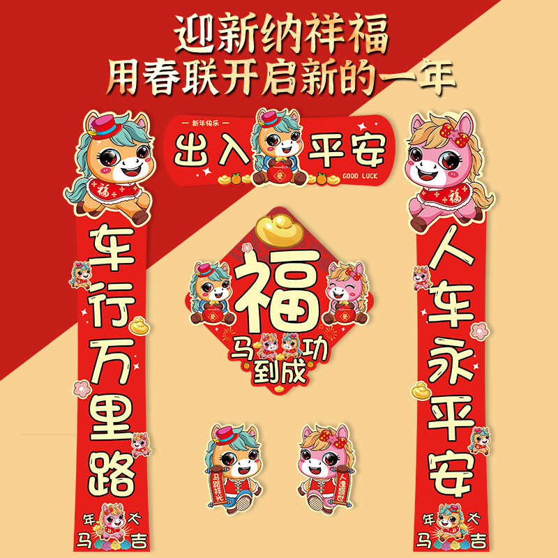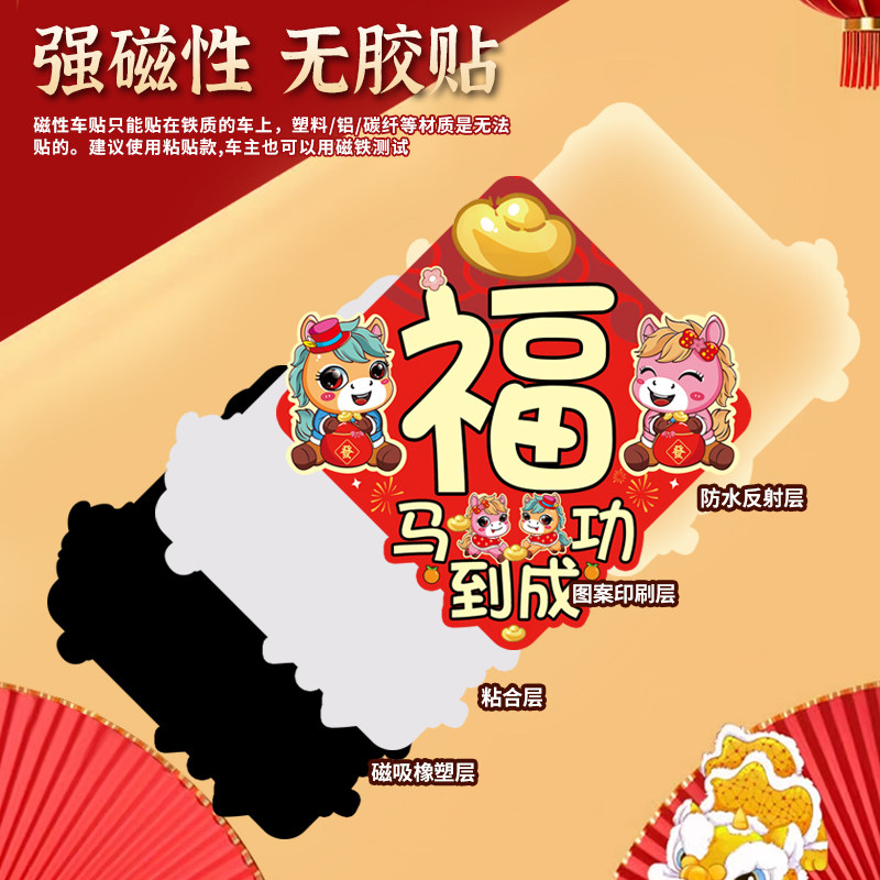 2026马年汽车车贴对联新款磁吸装饰贴纸创意新年迷你春联贴