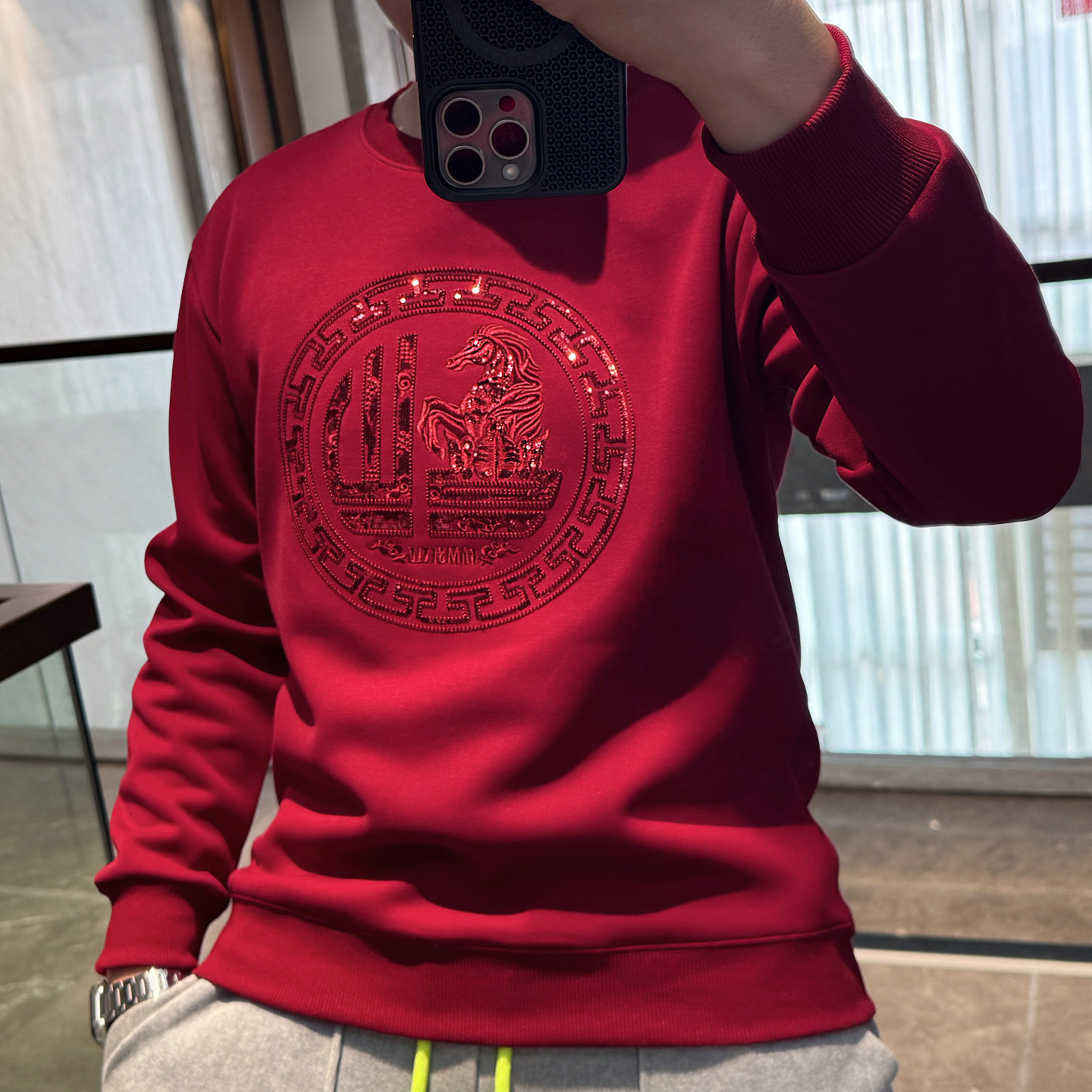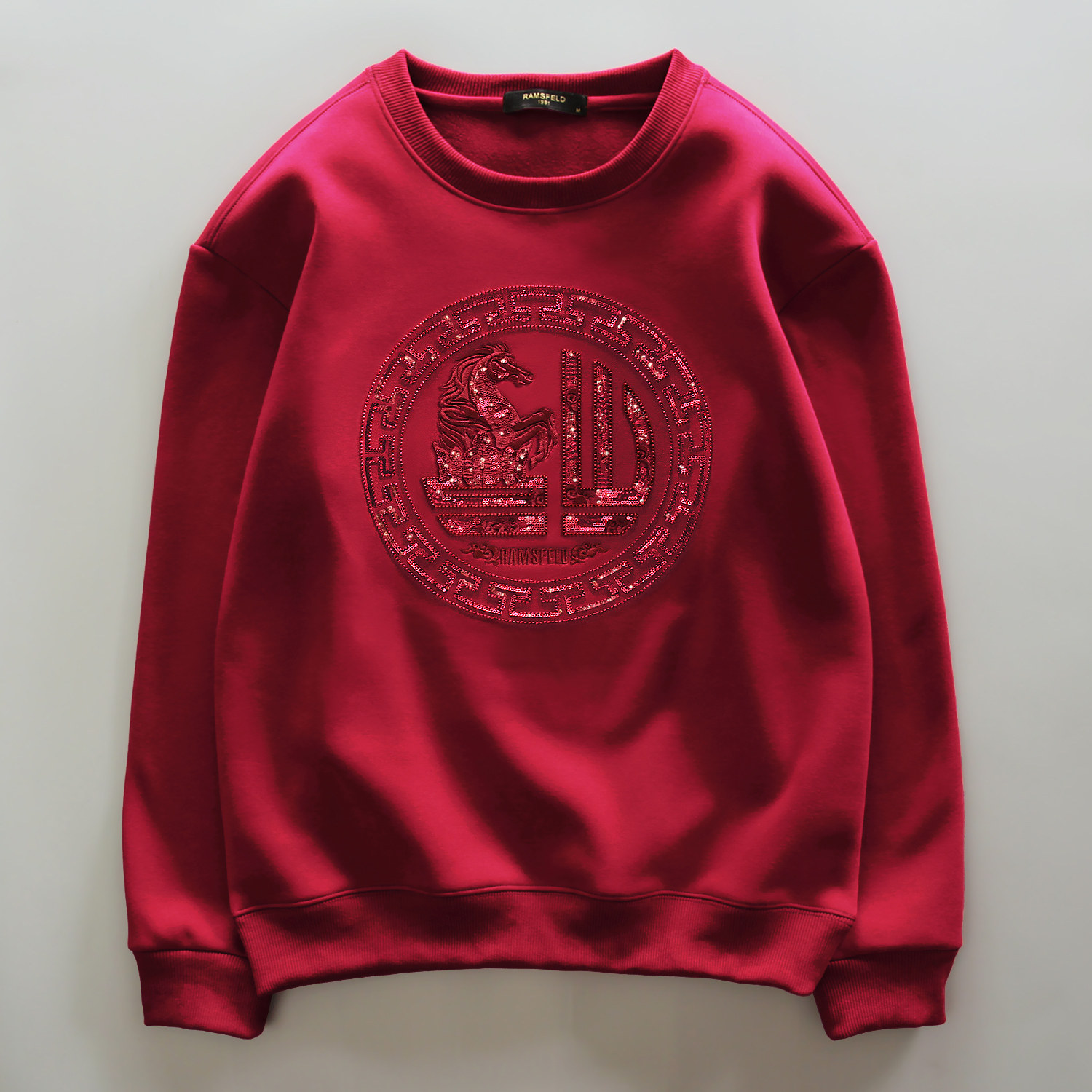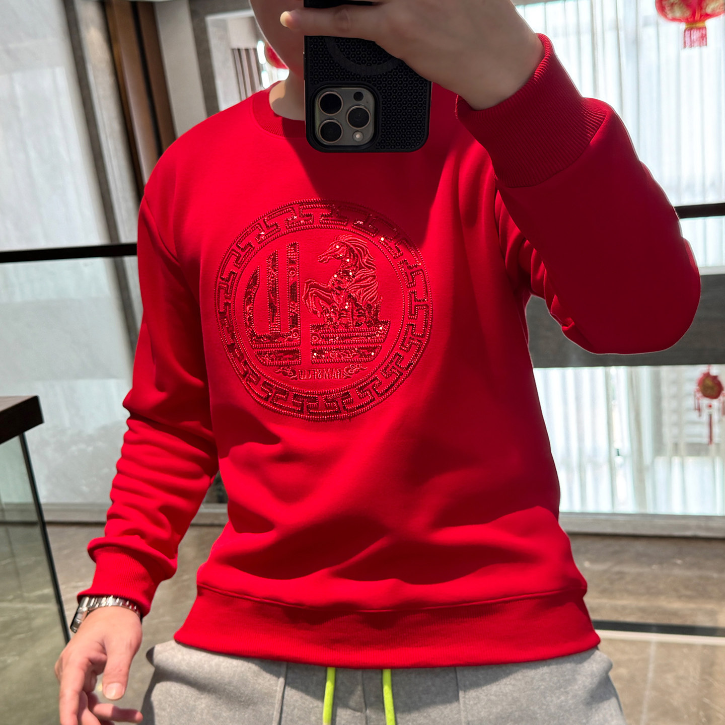 纶斯斐2026马年本命年红色卫衣男款国潮刺绣福马上衣过年大红外套