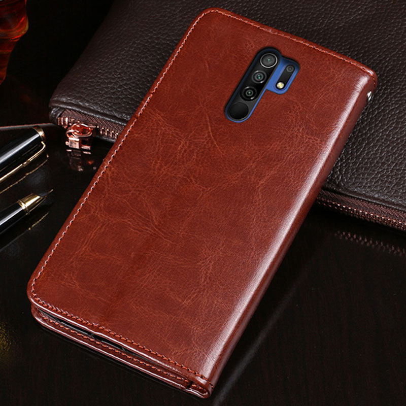 适用小米红米9手机壳翻盖式皮套6.53英寸M2004J19C保护硅胶套Redmi 9全包防摔防爆九软边钱包插卡磁扣带手绳
