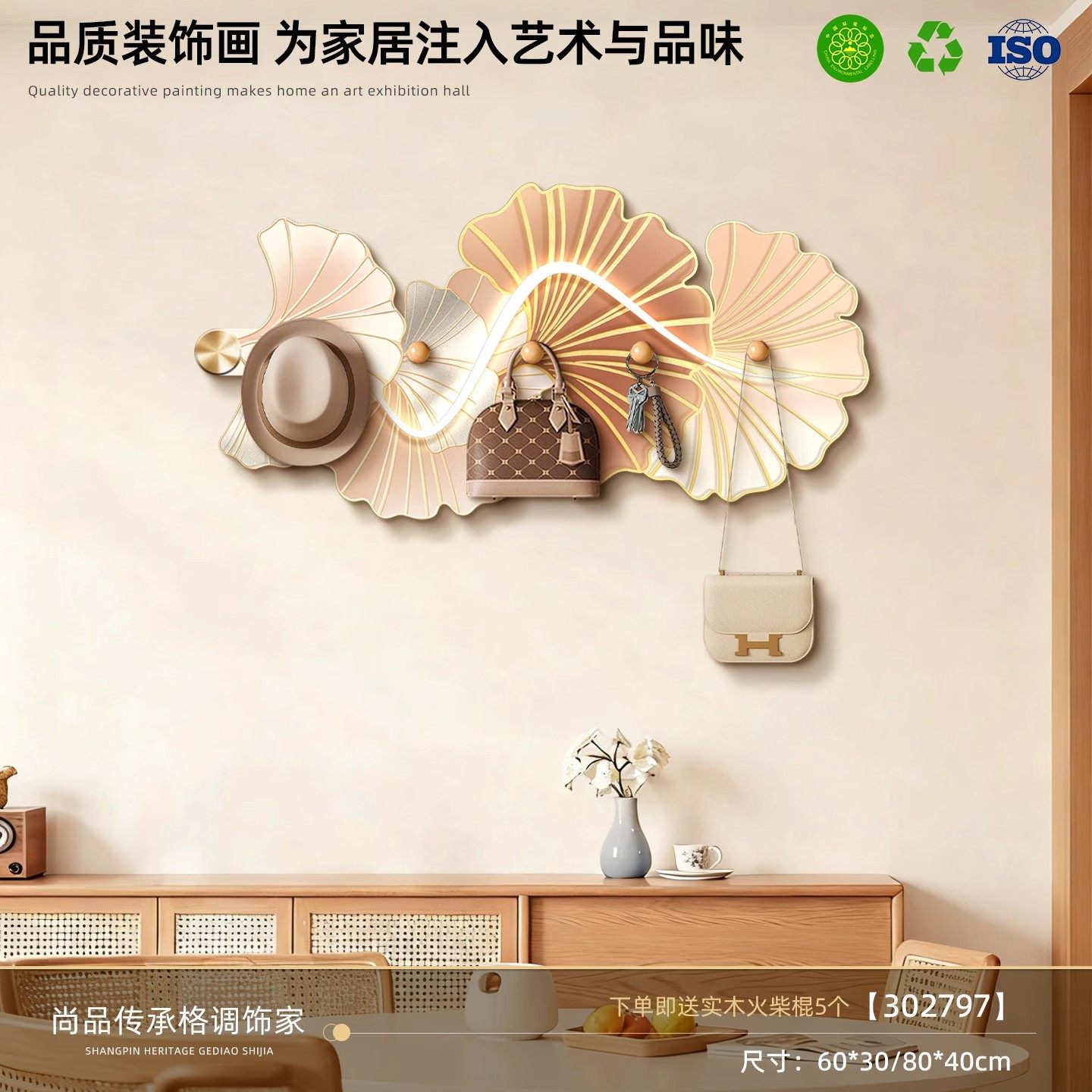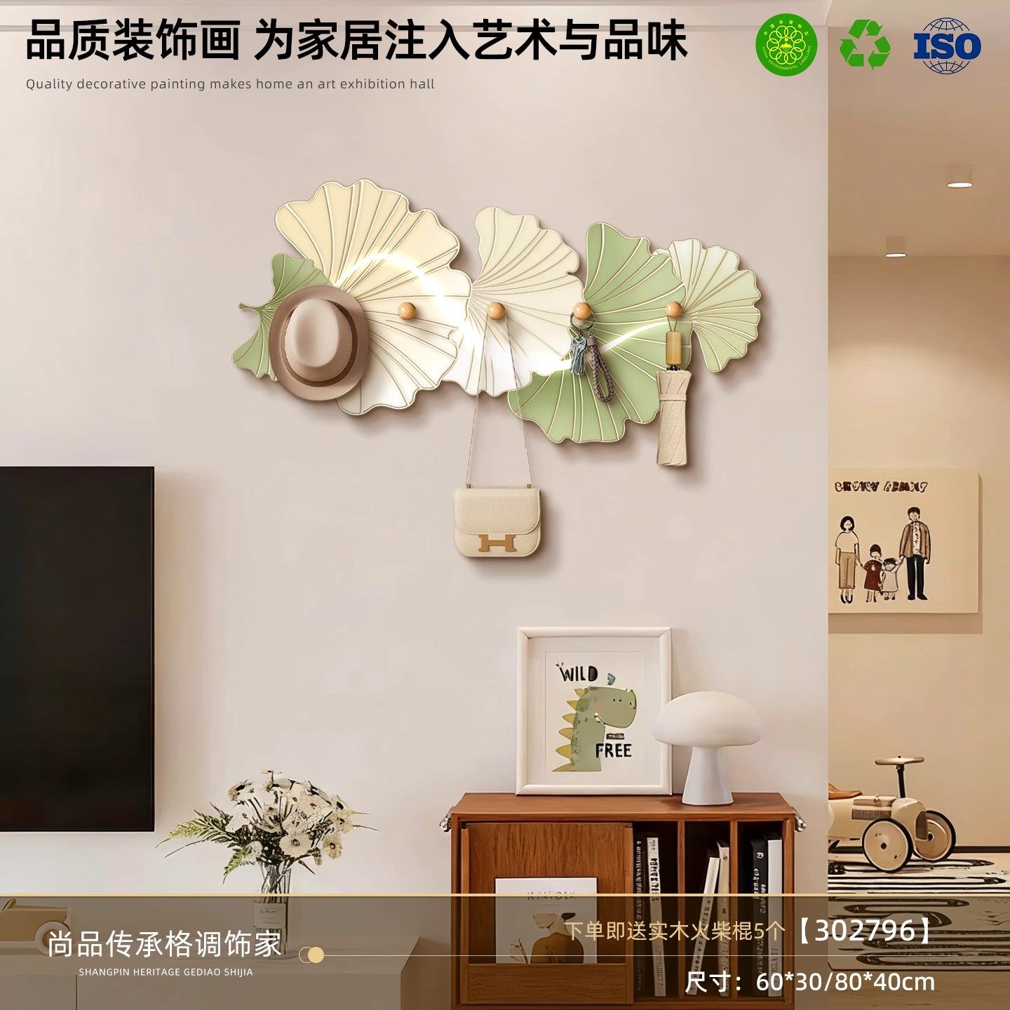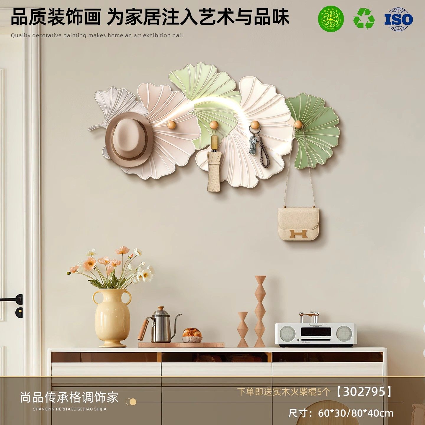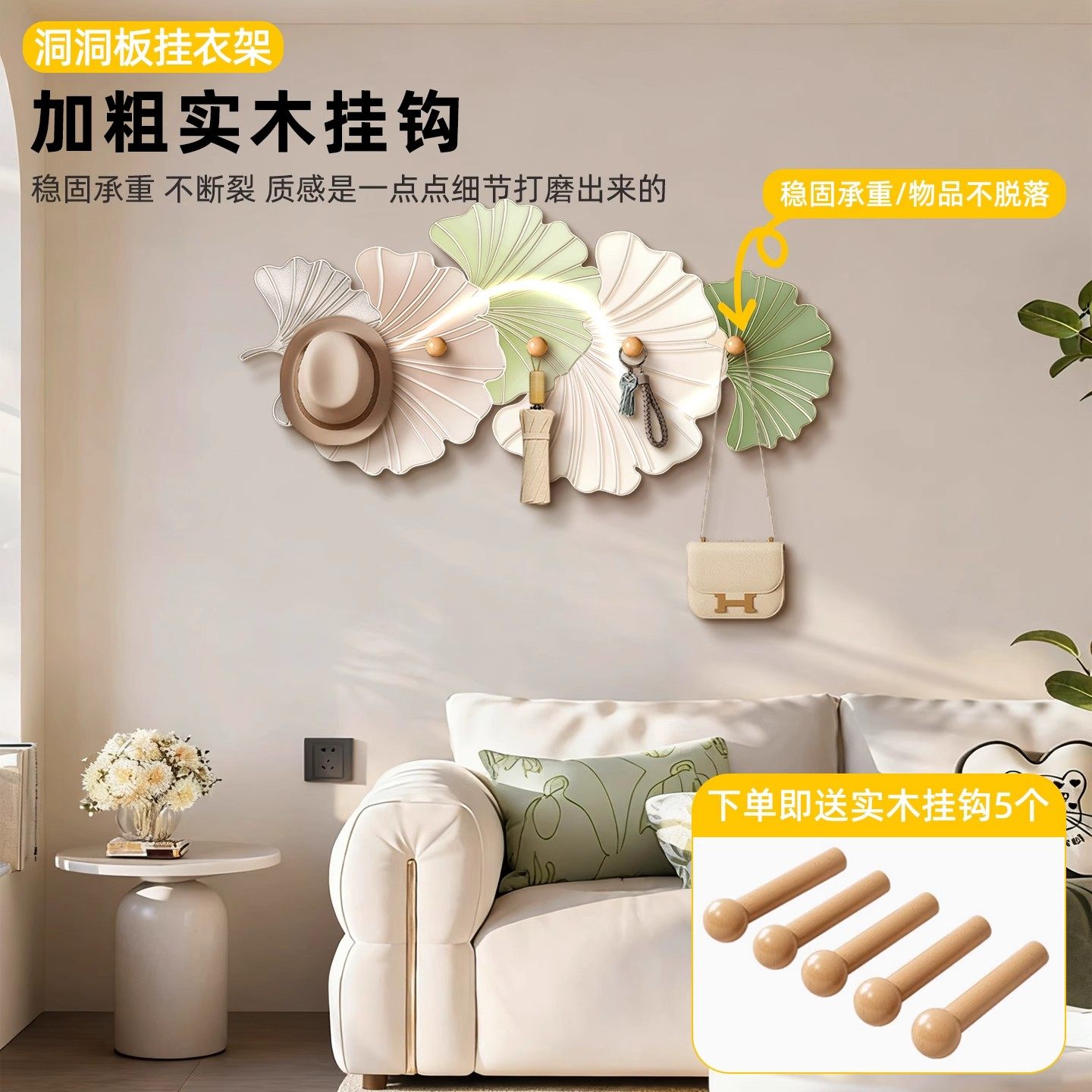 奶油风入户墙上衣帽架挂画银杏叶收纳壁挂一体架客厅洞洞板挂衣架
