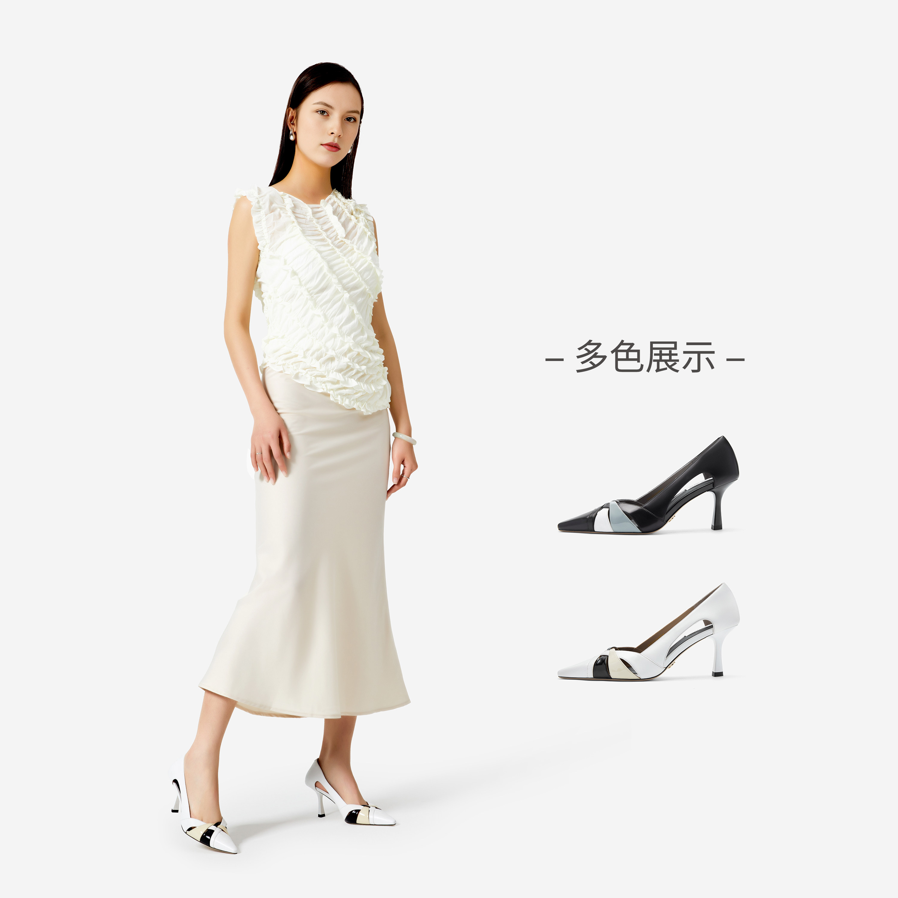 吴大叔2025秋冬时尚后空凉鞋尖头高跟鞋女气质高级不累脚漆皮女鞋