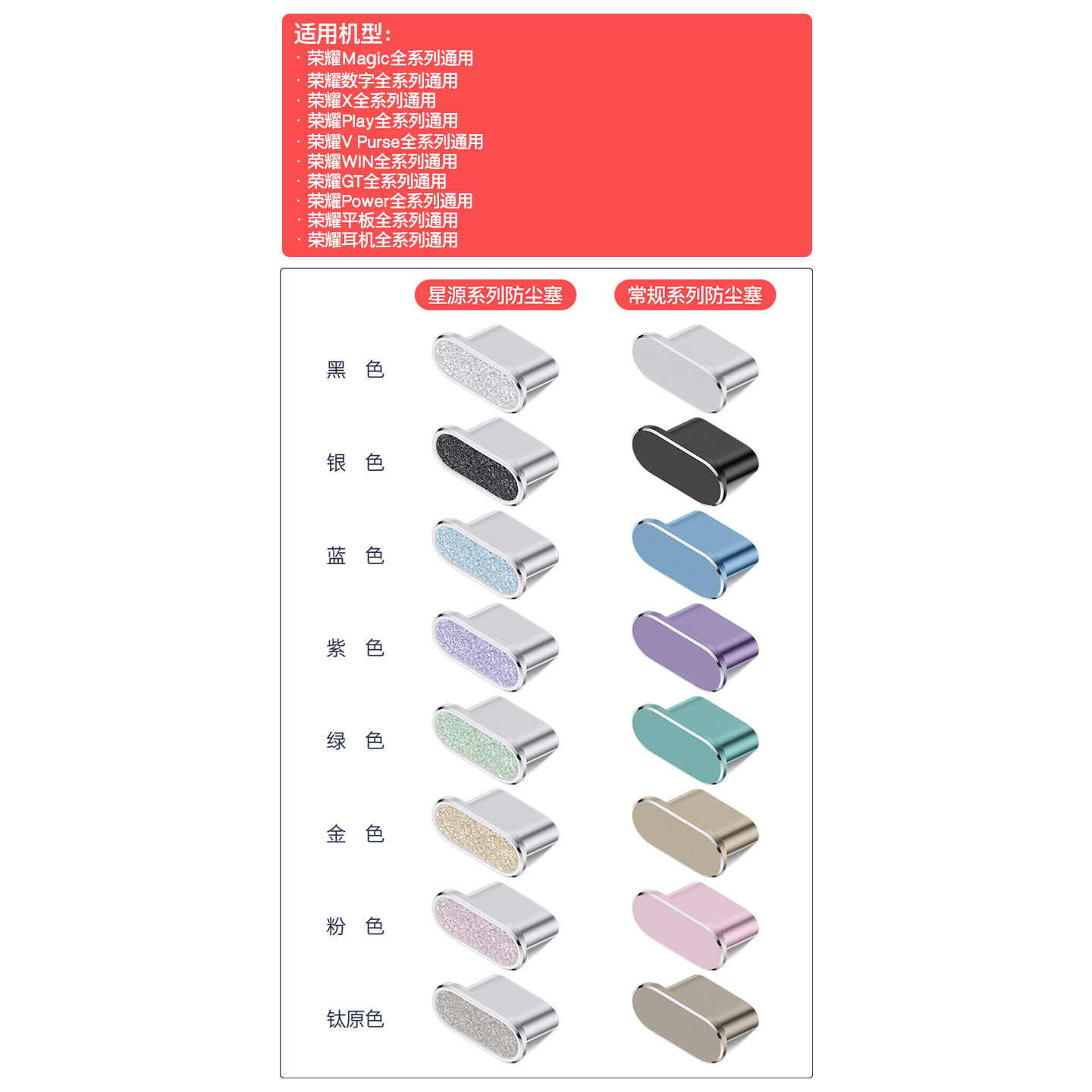 【霸榜】WIN RT荣耀Power2钻石闪粉防尘塞X70荣耀500Pro电源塞轻奢Magic8手机充电口保护塞Play10A网红GT平板