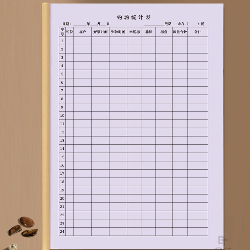 钓场统计表钓场收费统计表鱼塘登记本记账本定制钓鱼场入场券回鱼票专用收据钓场收费统计表钓鱼场入场券回鱼