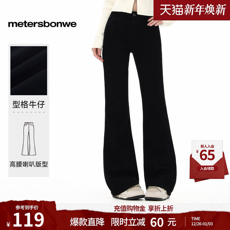美特斯邦威修身牛仔裤女秋冬季款黑色显瘦直筒百搭通勤微喇裤长裤