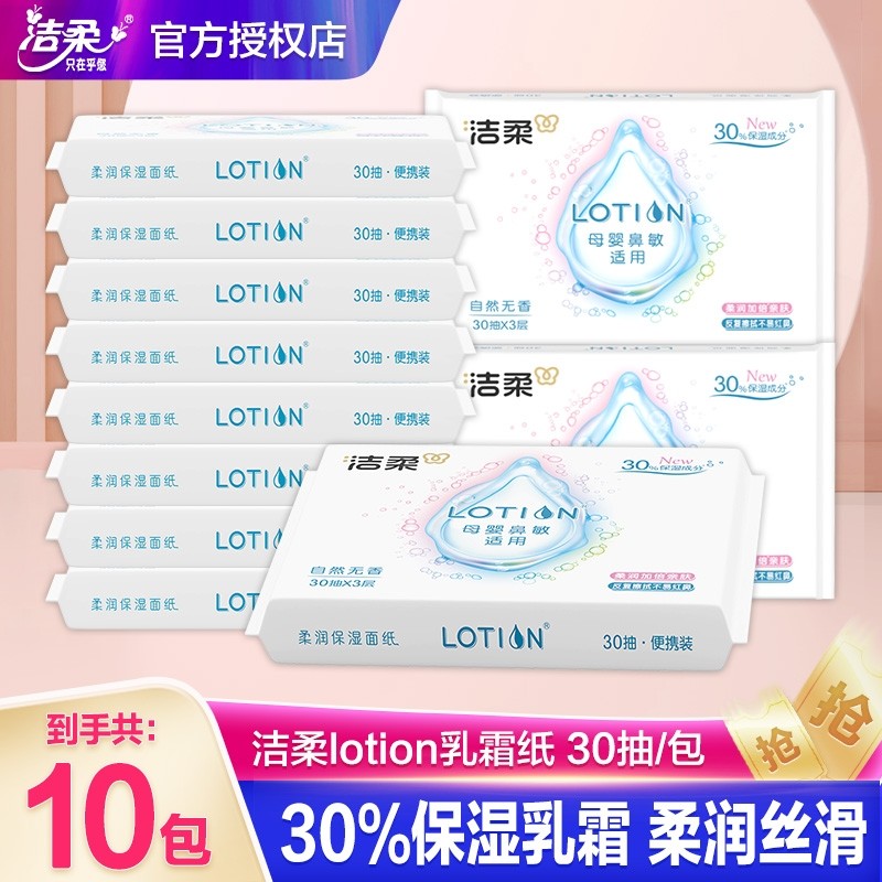 洁柔Lotion保湿乳霜纸巾亲肤红鼻敏感无香云柔抽纸便携装抽取式