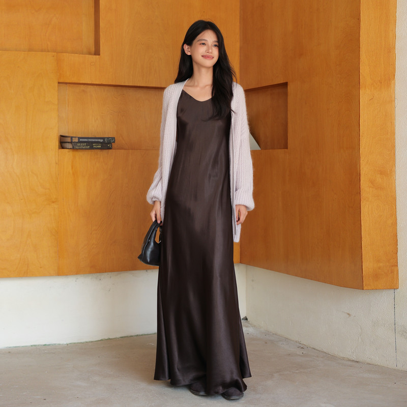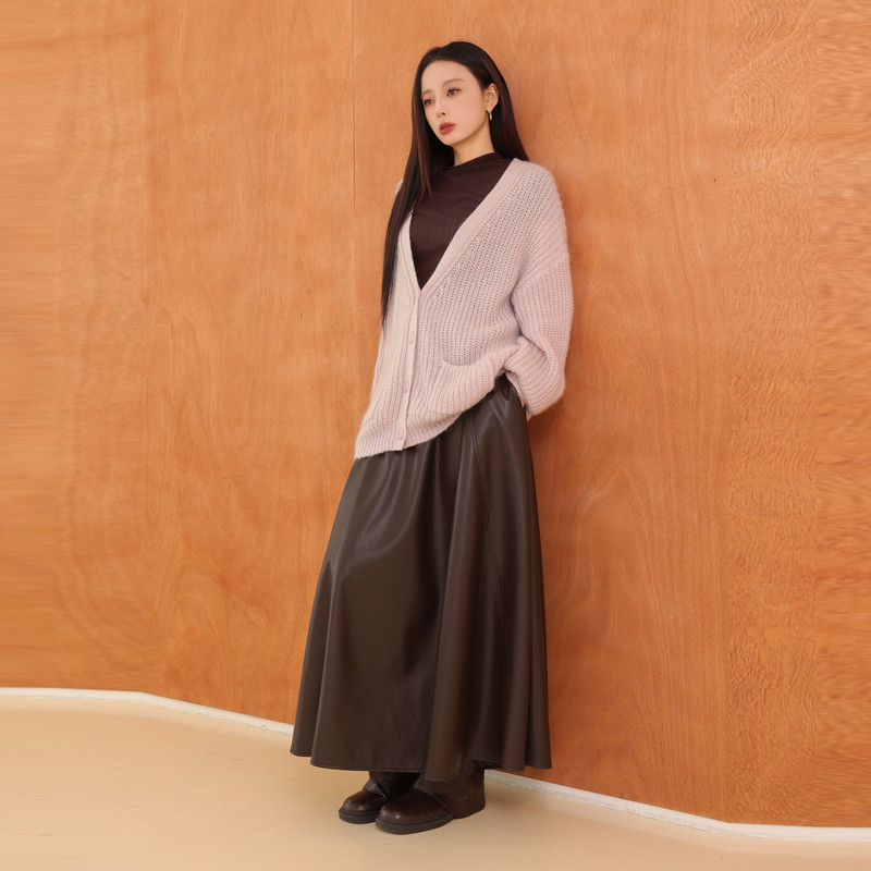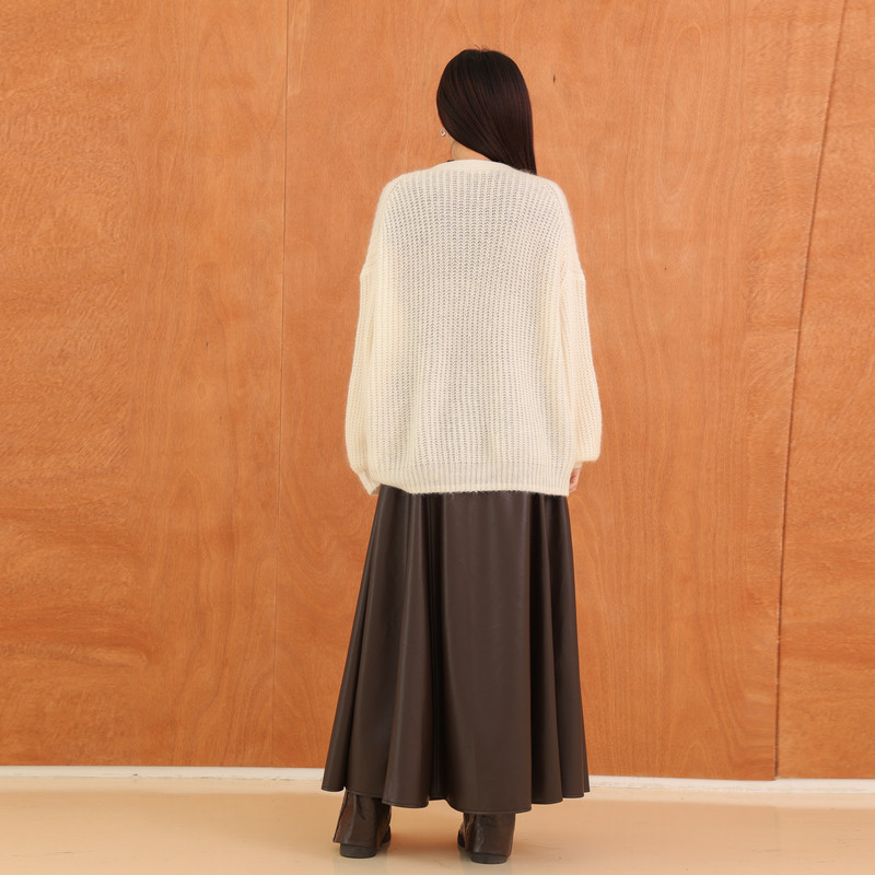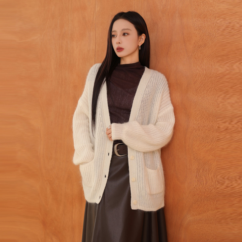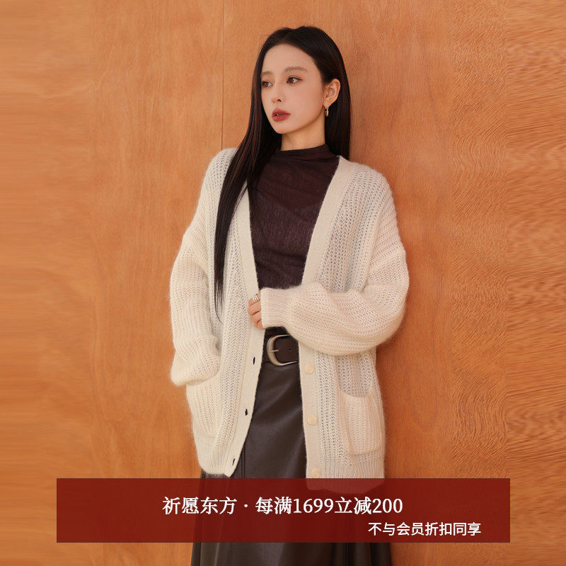 AIRIQI商场同款25秋新款慵懒风V领镂空马海毛针织开衫AH53KS104