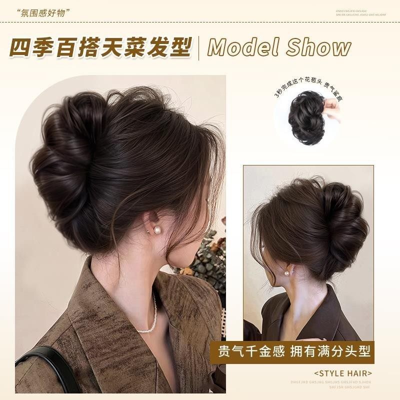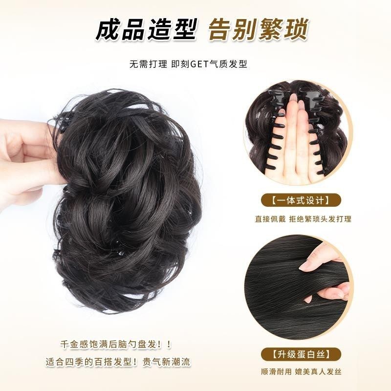 低扎丸子头假发鸡毛头抓夹盘发发包慵懒感造型头饰自然蓬松后脑勺