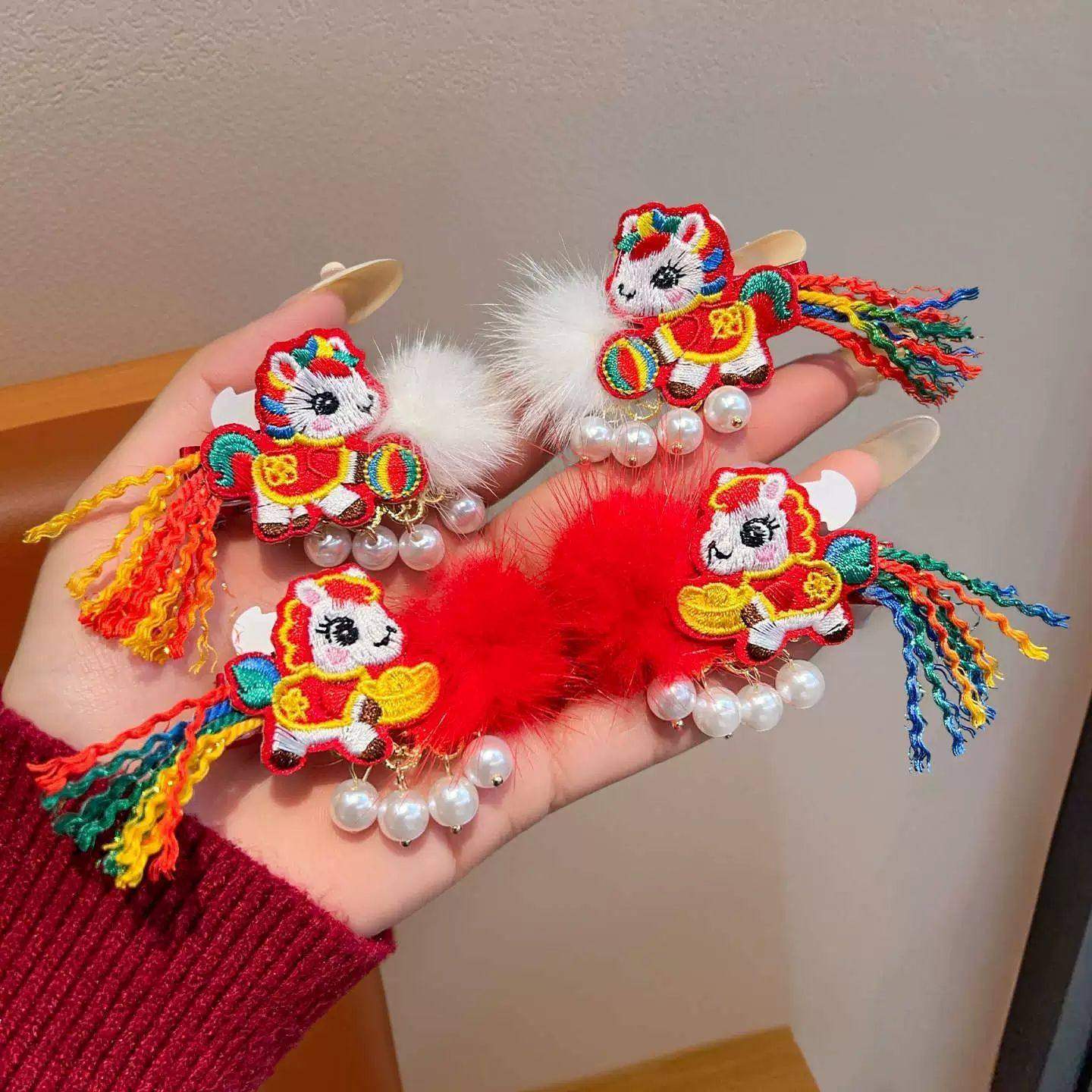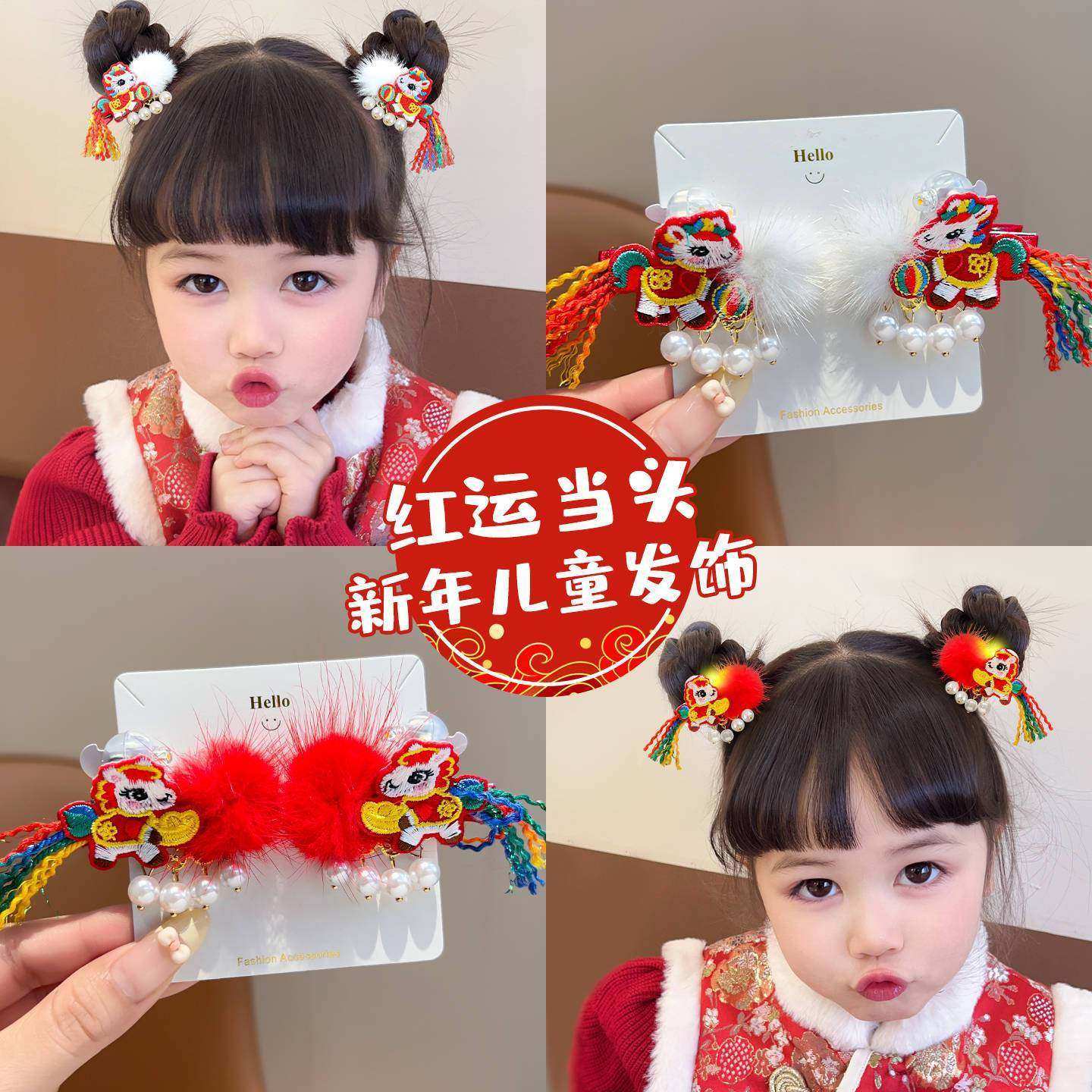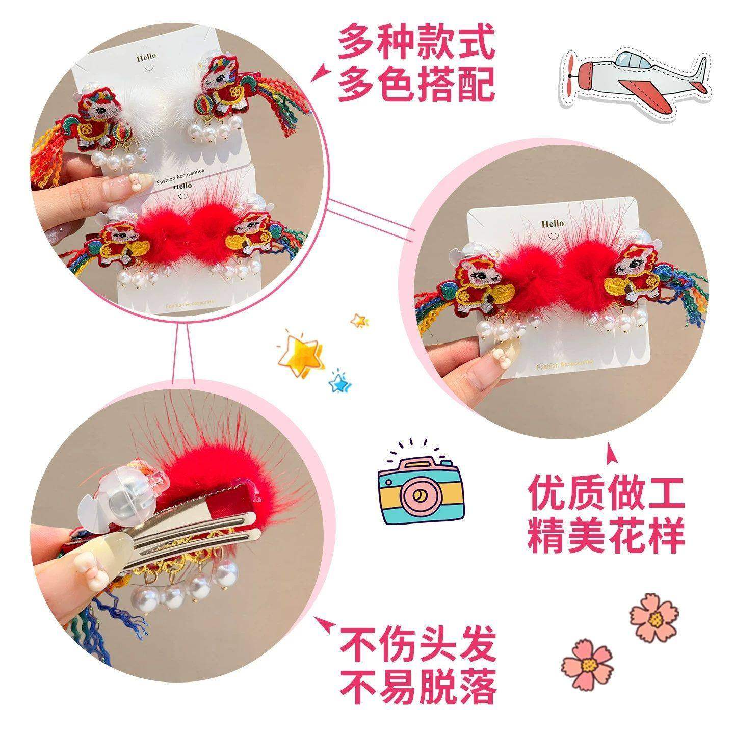 喜庆会发光的儿童发夹过年包新年红色女童头饰宝宝汉服发饰古风