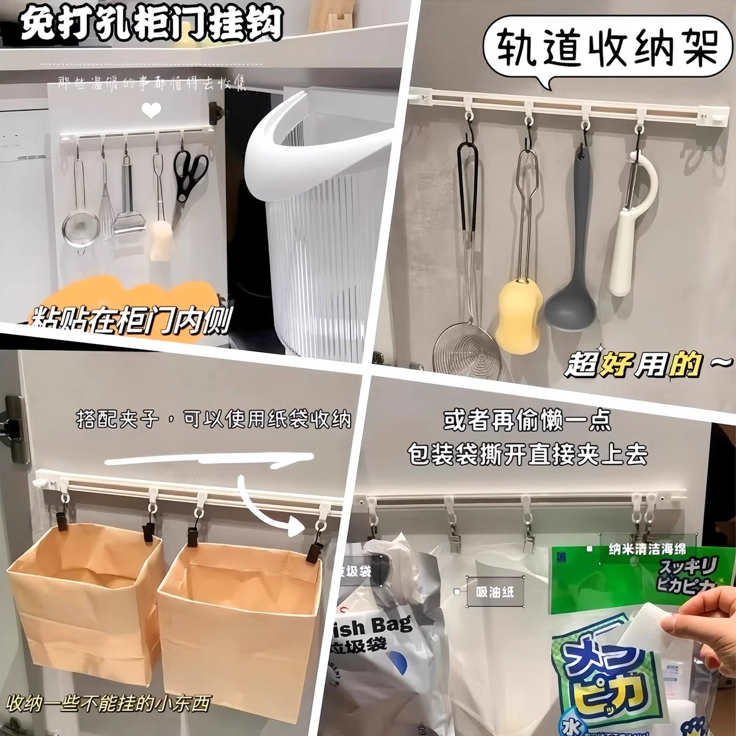 厨房收纳滑动轨道挂钩柜门收纳挂钩神器免打孔橱柜门后收纳置物架