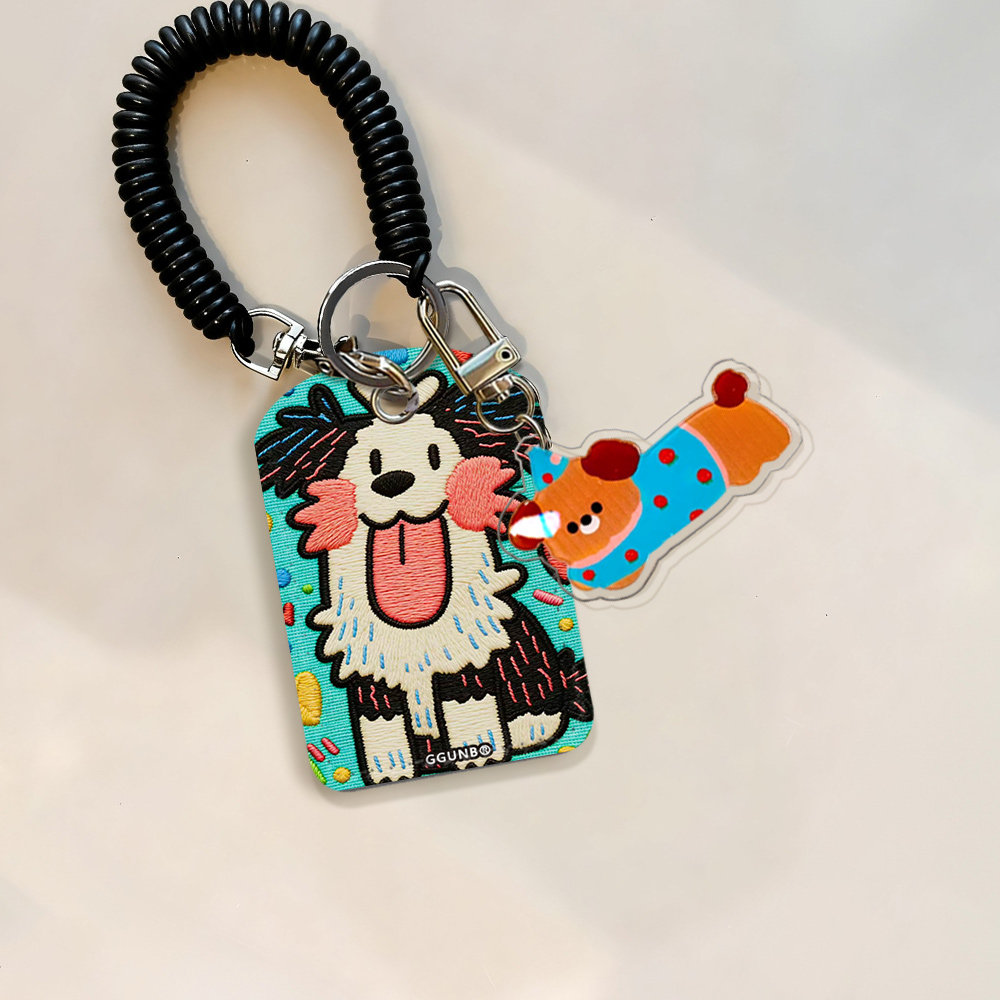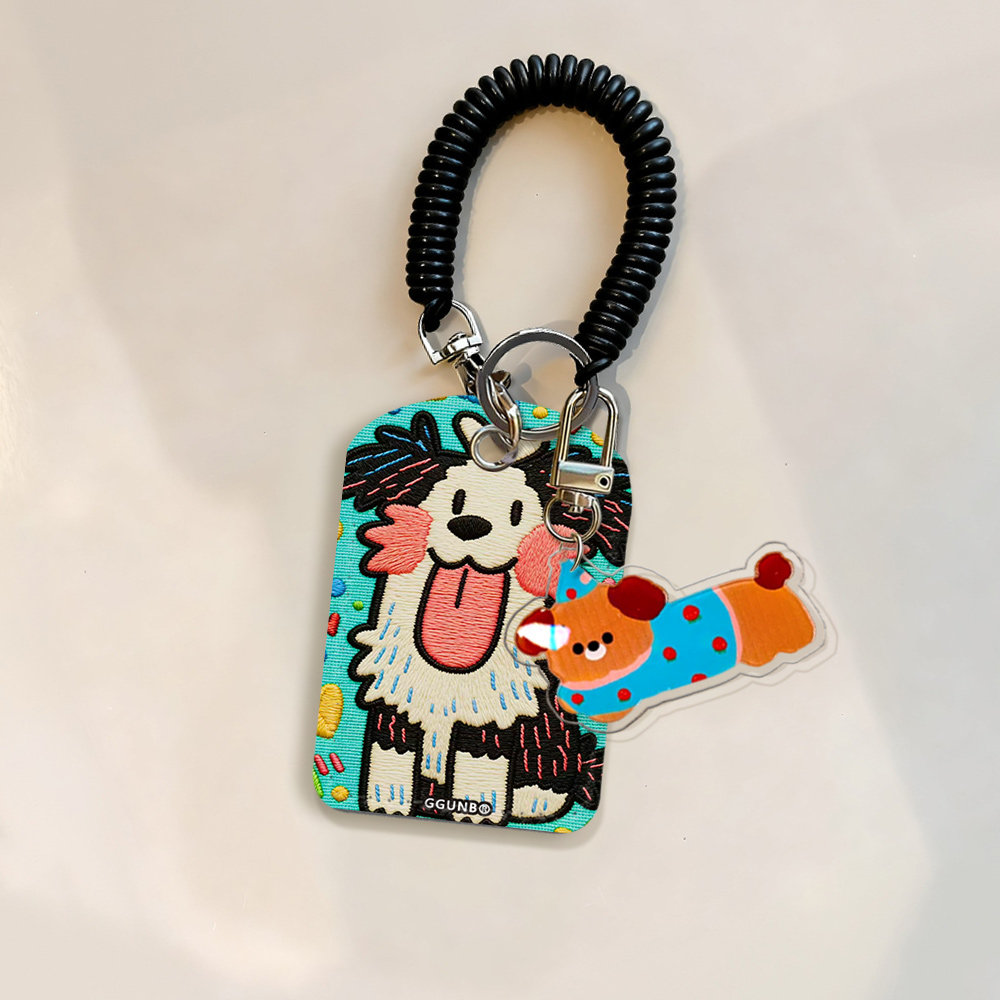 平面图蓝底粉蓝条纹吐舌腮红狗门禁水滴小卡套钥匙扣迷你NFC感应小区公交卡交通电梯IC卡防摔保护套