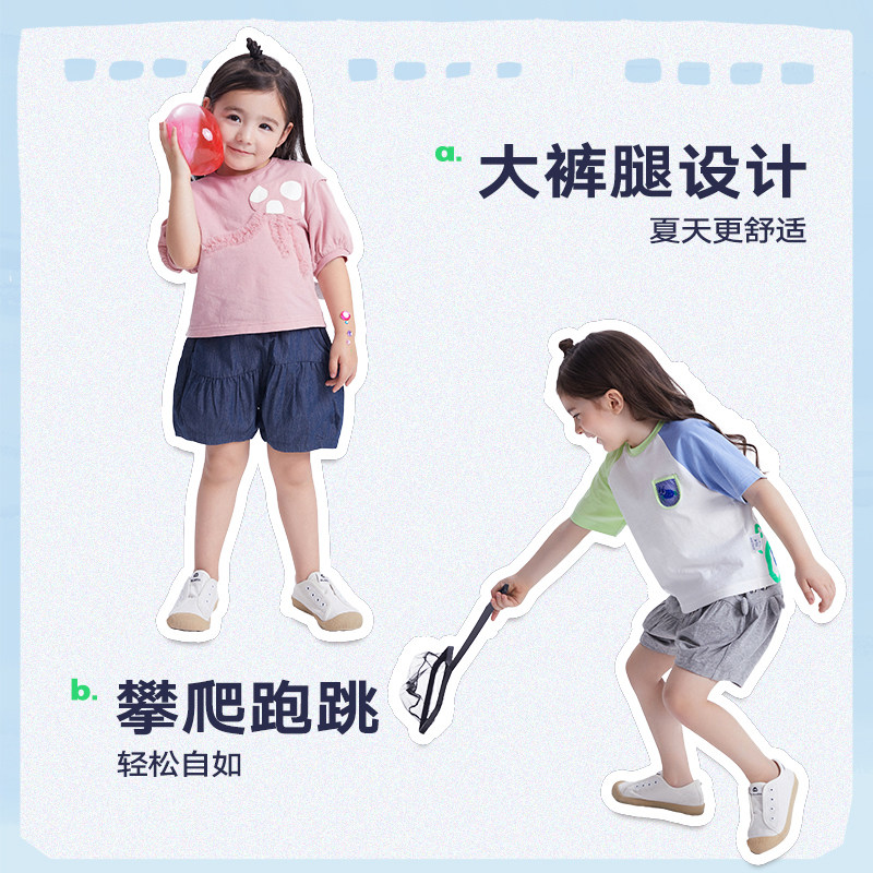 【会员福利】马拉丁童装女童牛仔短裤夏装水母造型夏裤吸湿透气