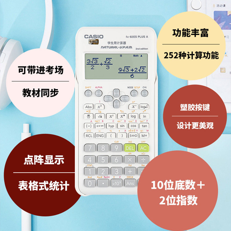 Casio/卡西欧FX-82ES PLUS A函数科学计算器建造师中级会计注会CPA适用初高中考试中小学生用考试大学计算机
