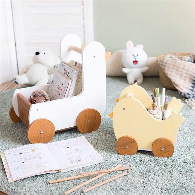 新款爱鸭子推车小鸡木质书架儿童房装饰置物宝宝摄影拍照道具