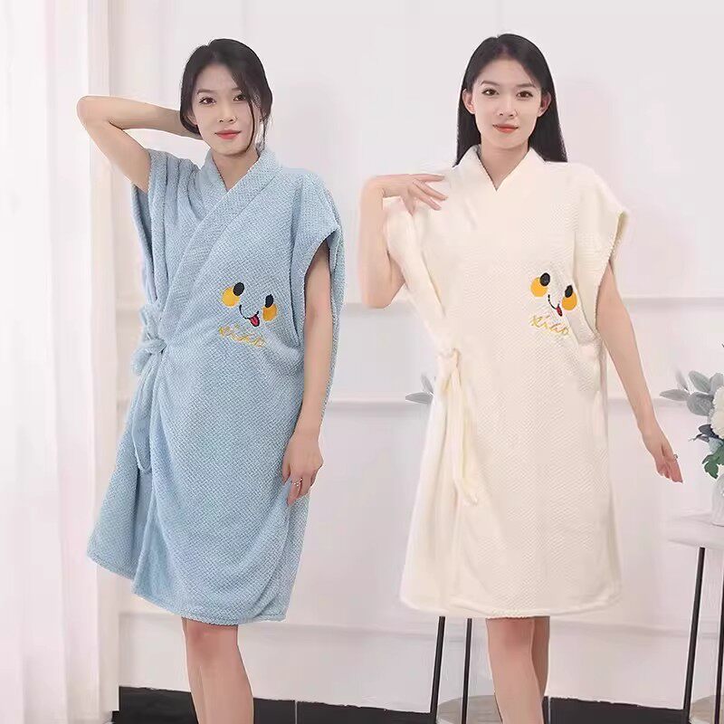 浴袍女夏季2025新款珊瑚绒可穿式女款睡袍吸水速干短袖大码浴巾裹