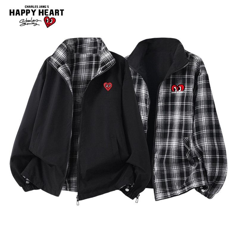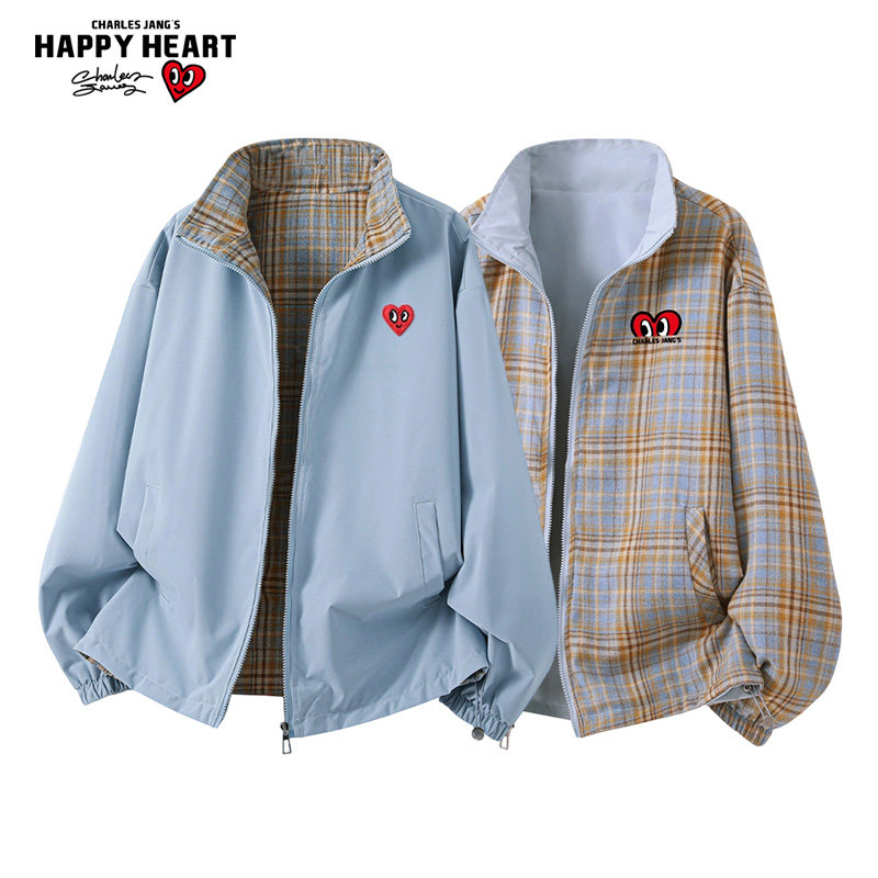 查尔斯桃心 拼色格子双面穿立领运动夹克男女春秋季防风情侣外套