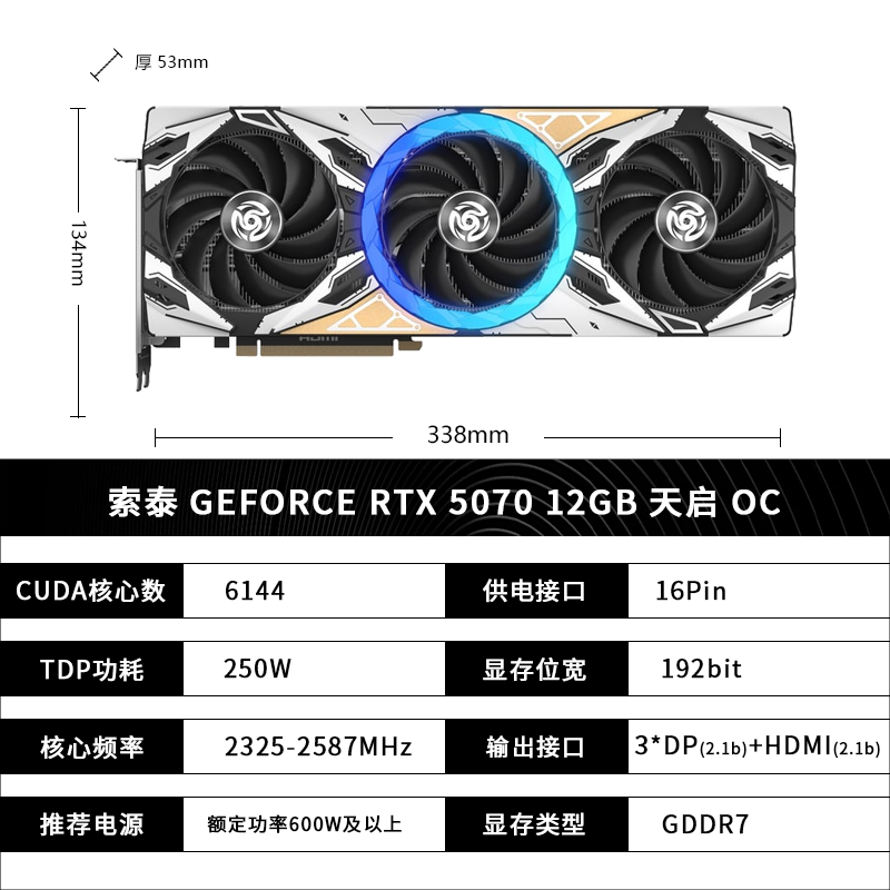 索泰RTX 5070独立显卡天启OC电竞游戏剪辑渲染直播台式机电脑12G