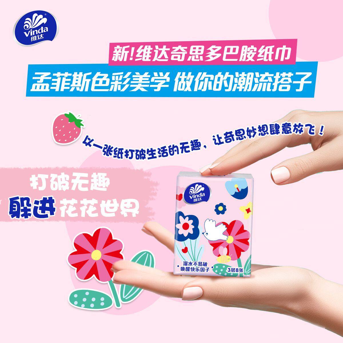 维达手帕纸3层8片无香无印花面餐巾纸随身装便携式小包纸巾批发