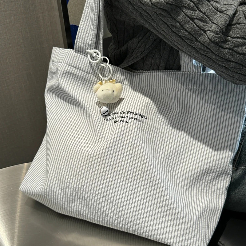 谁懂啊超~韩系慵懒风帆布包女2025新款手提大容量感单肩条纹肩包