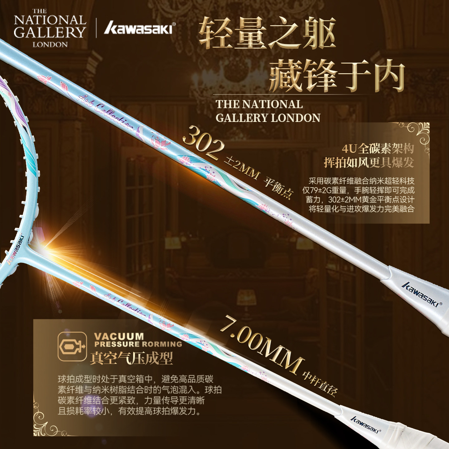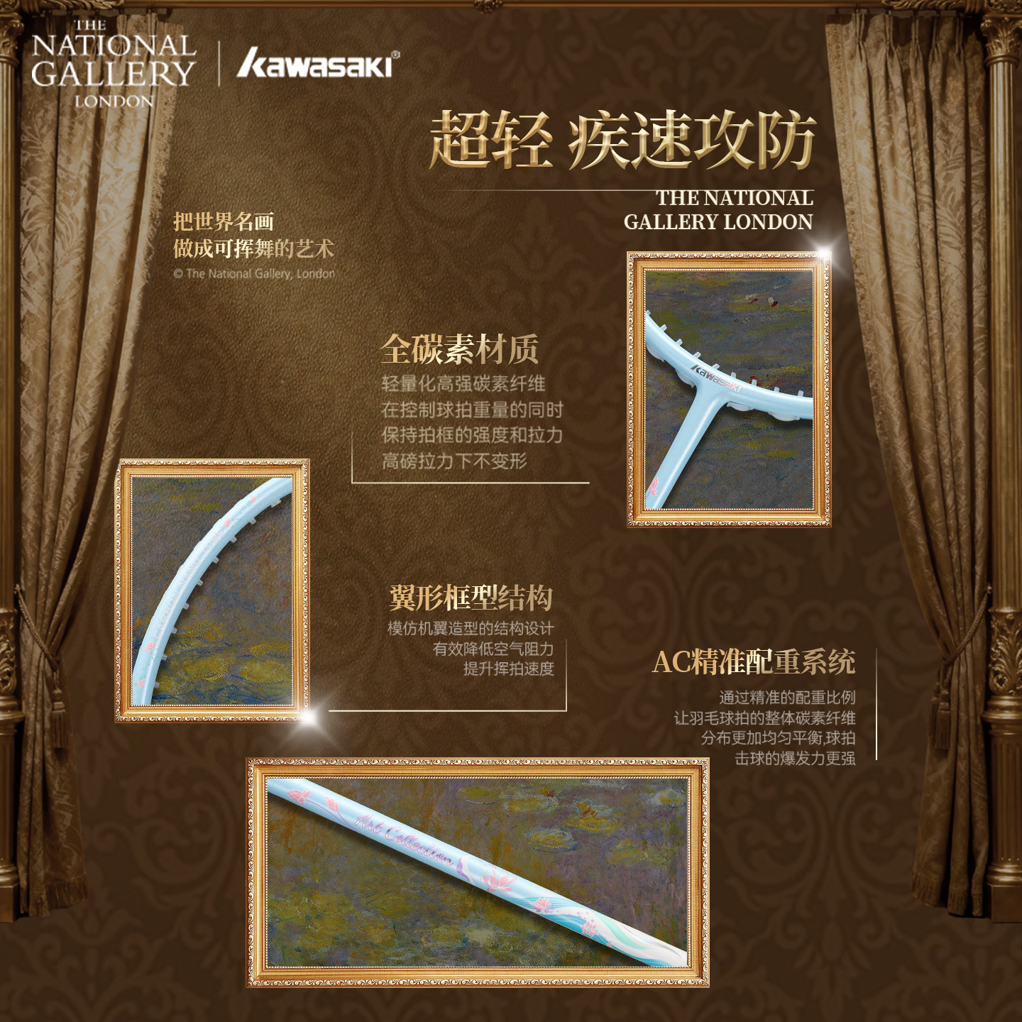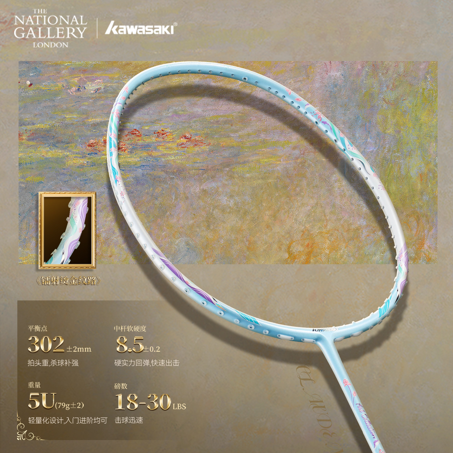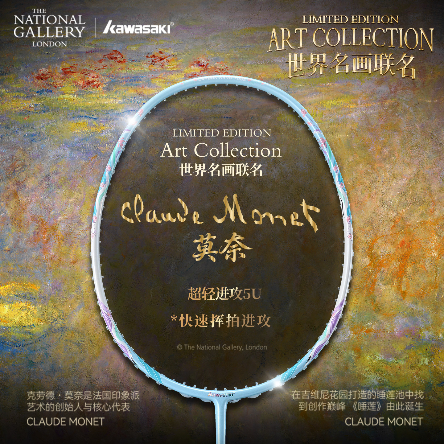 kawasaki川崎莫奈睡莲世界名画羽毛球拍超轻5U进攻型专业中式艺术