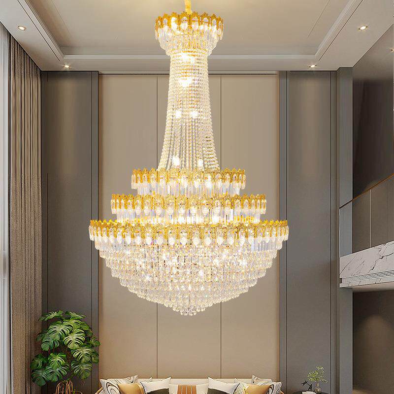 跨境客厅大吊灯挑空中山现代轻奢水晶灯饰复式楼中楼别墅大厅灯具