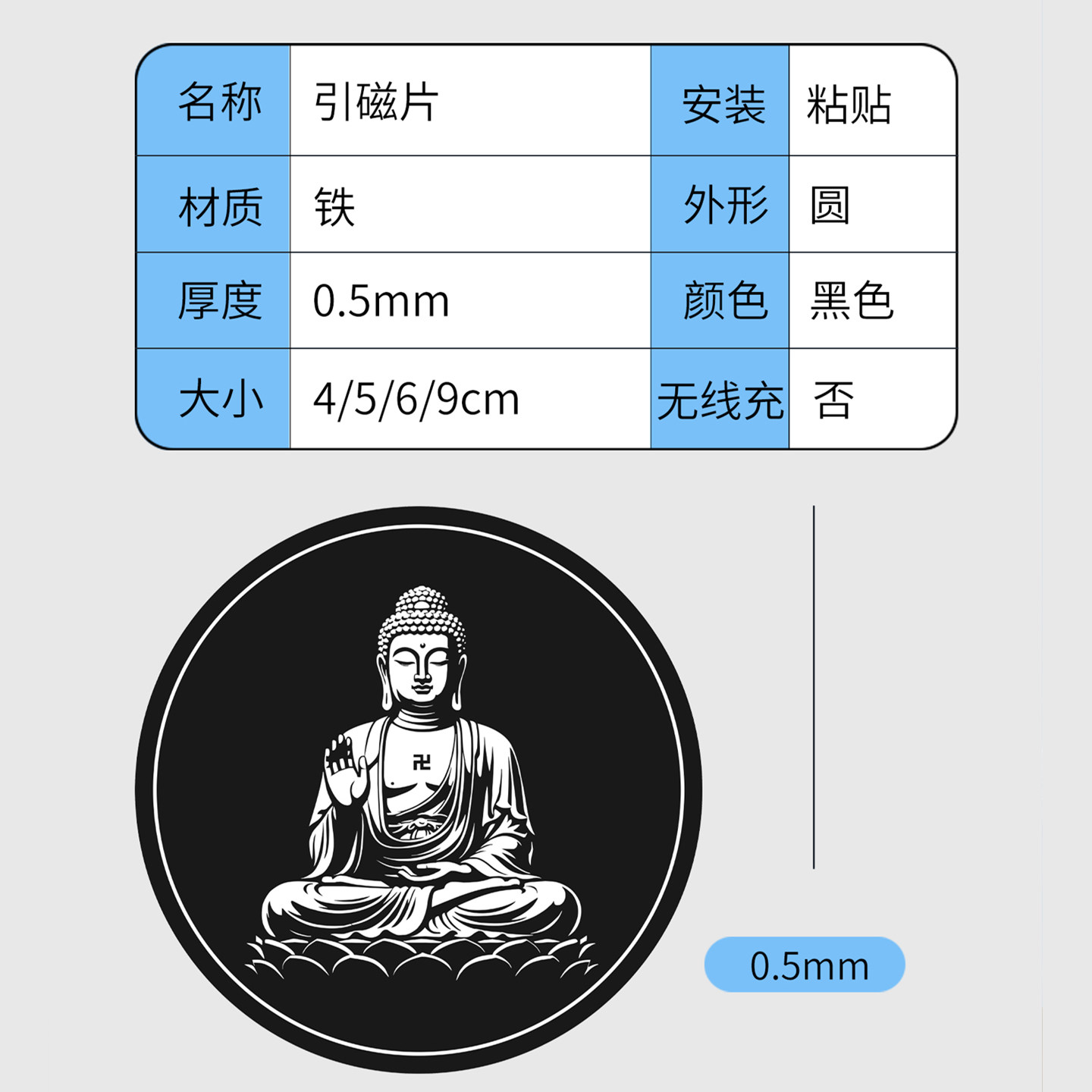 磁吸车载手机支架引磁片全金属铁片汽车用导航支架大日如来超薄贴片强力粘贴片圆形大号4/5/6/9cm厘米带背贴