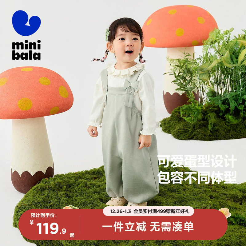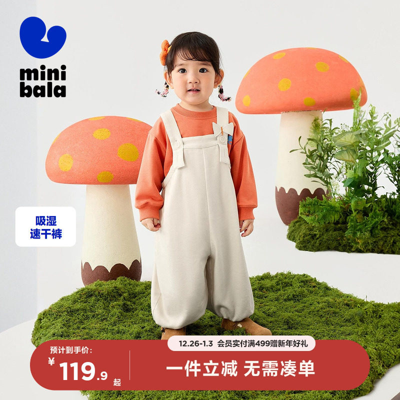 【吸湿速干】迷你巴拉巴拉女童背带裤2025新款宽松时尚宝宝长裤