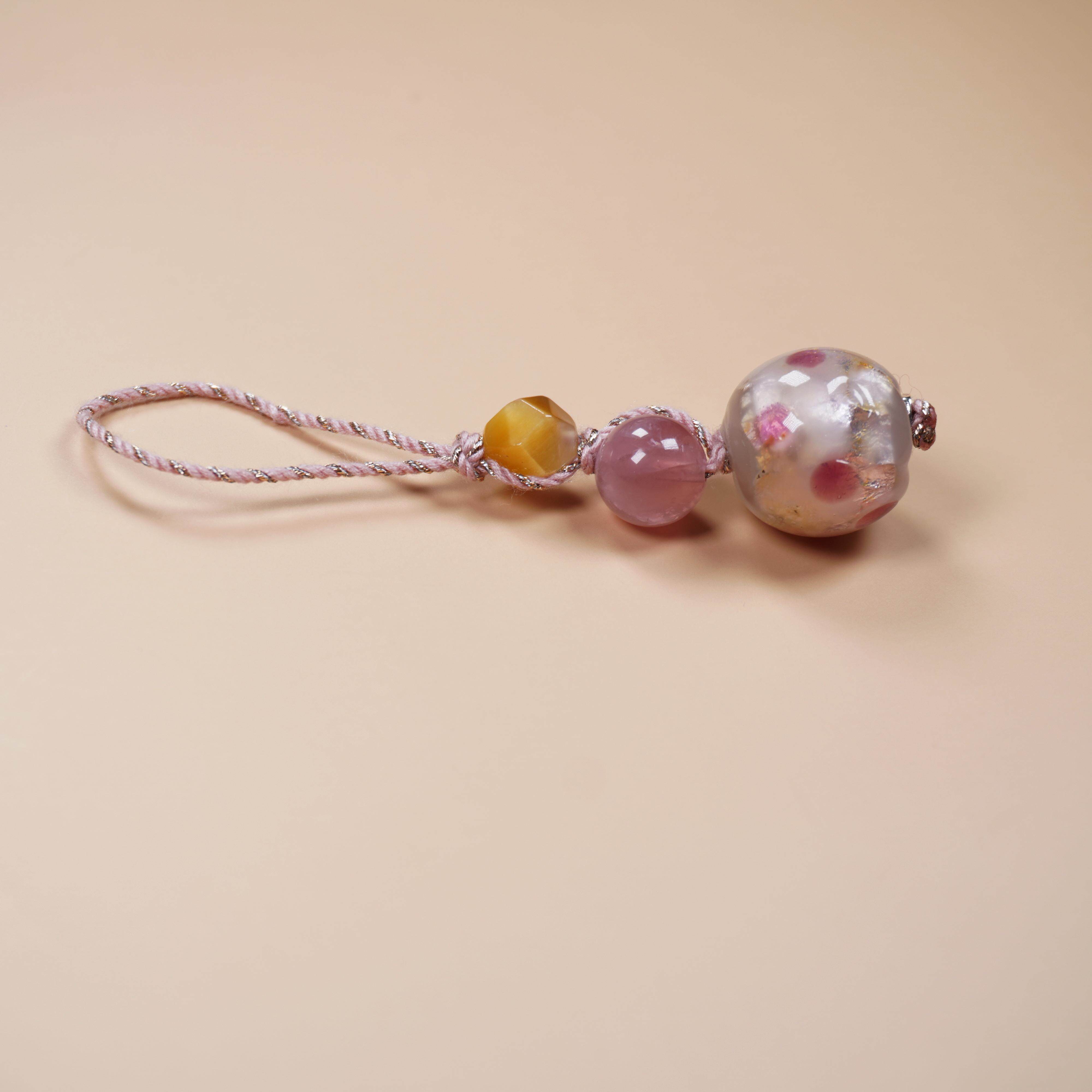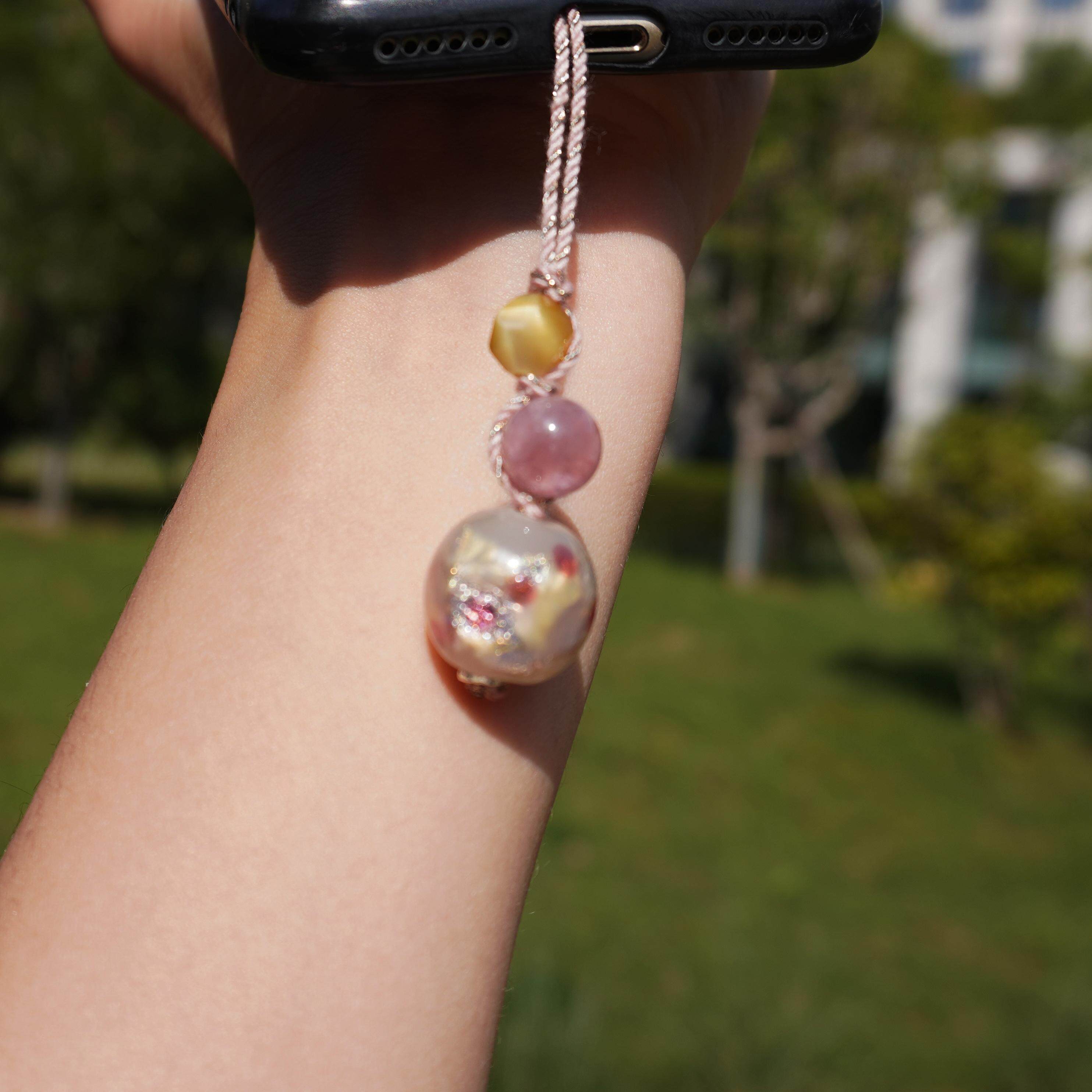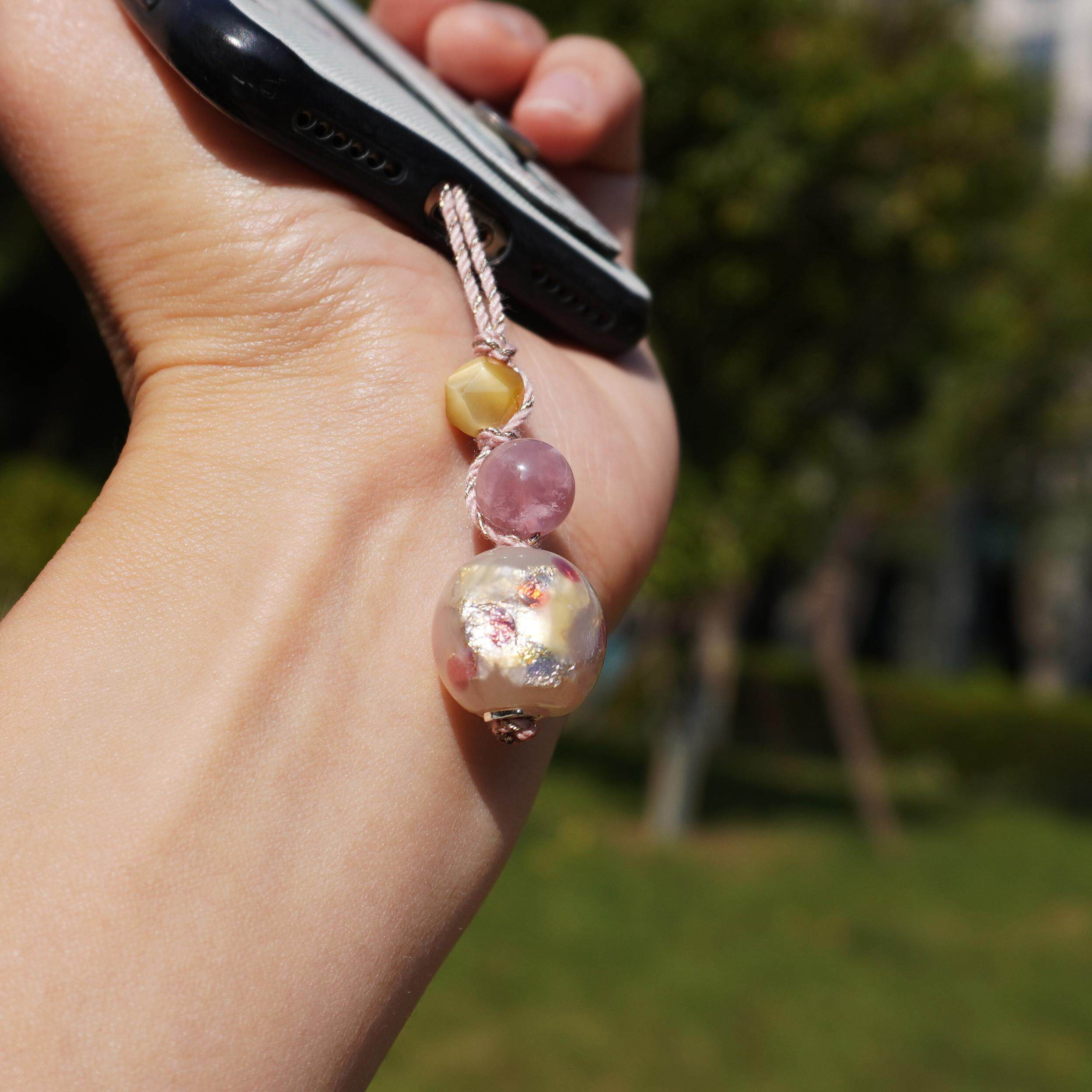 手工琉璃珠手机链女短款手腕挂绳天然马粉挂饰粉水晶玉石挂件编绳