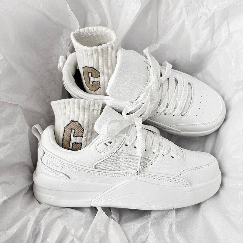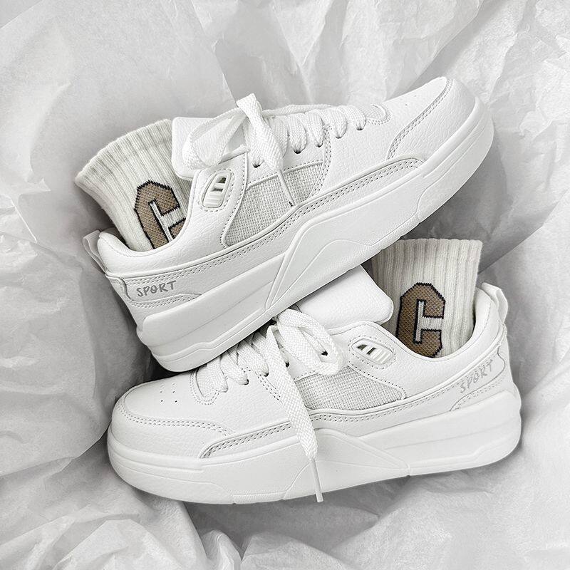 港风ins潮复古厚底白色情侣板鞋百搭多巴胺运动休闲小白鞋子圆头