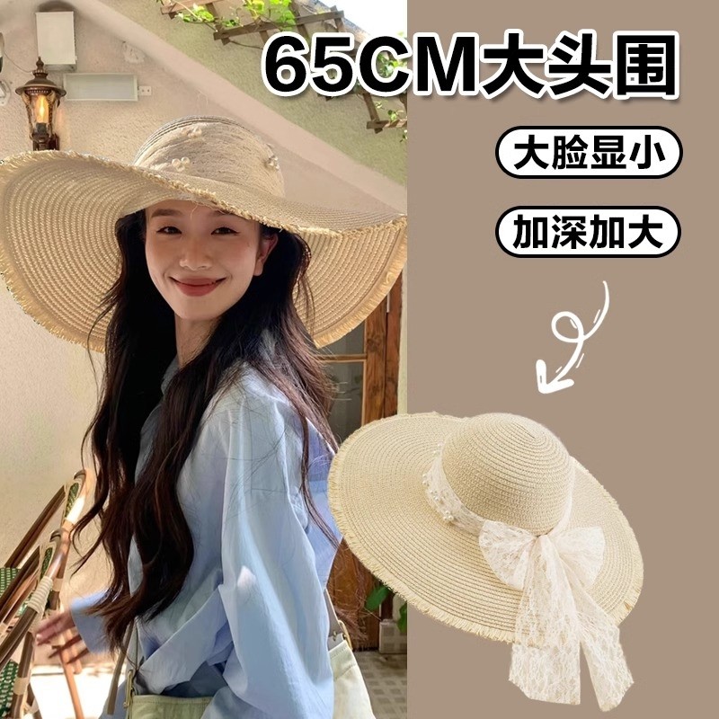 大头围蕾丝草帽女2025新款夏海边沙滩田园大帽檐田园风遮阳帽防晒