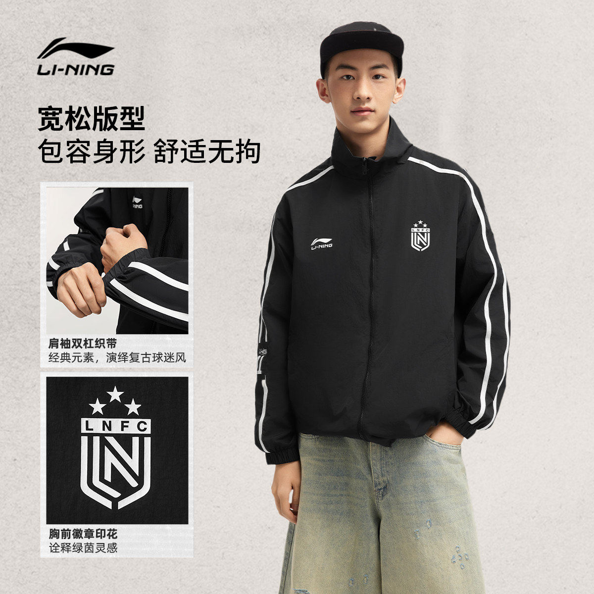 李宁外套男春季情侣复古球迷夹克美式休闲宽松连帽上衣运动风衣女