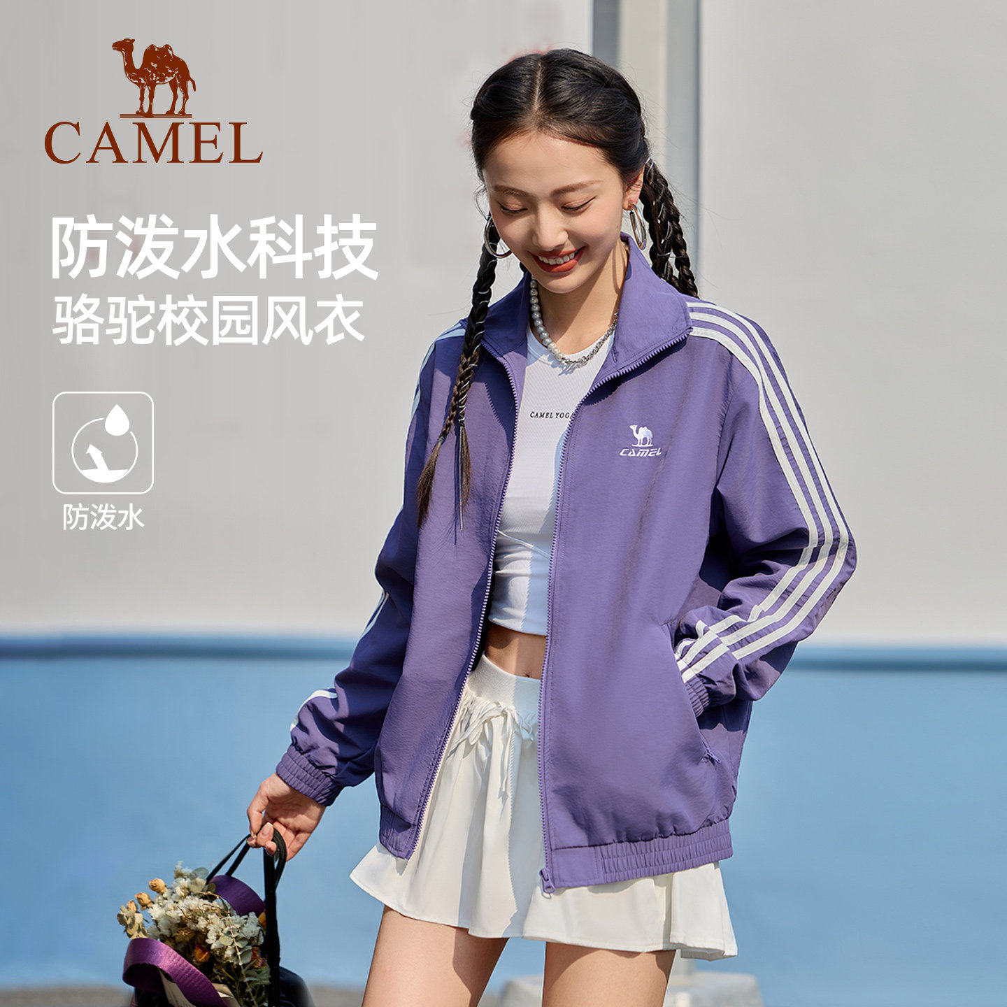 骆驼校园风衣防泼水外套女春复古防晒薄款户外骑行休闲运动夹克男