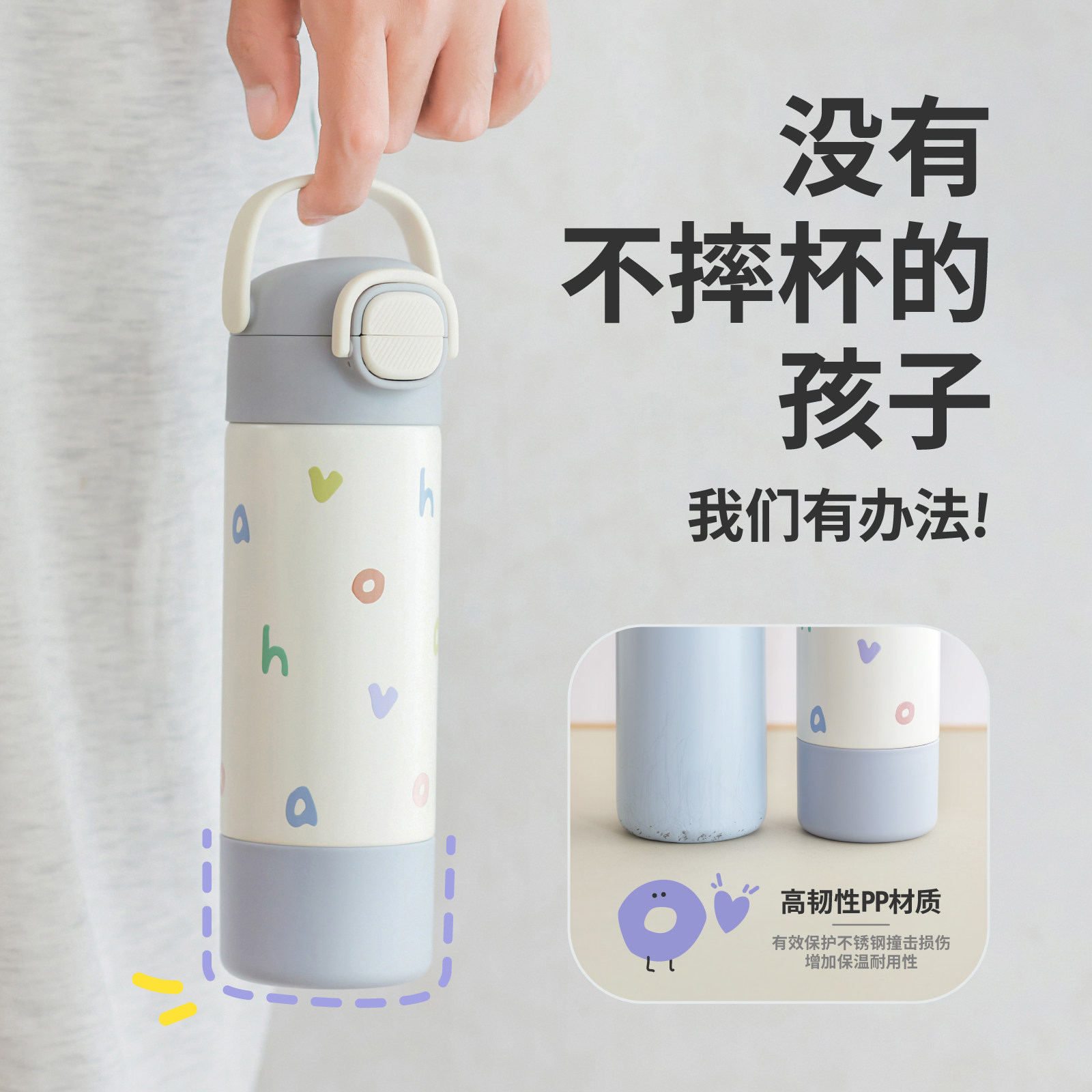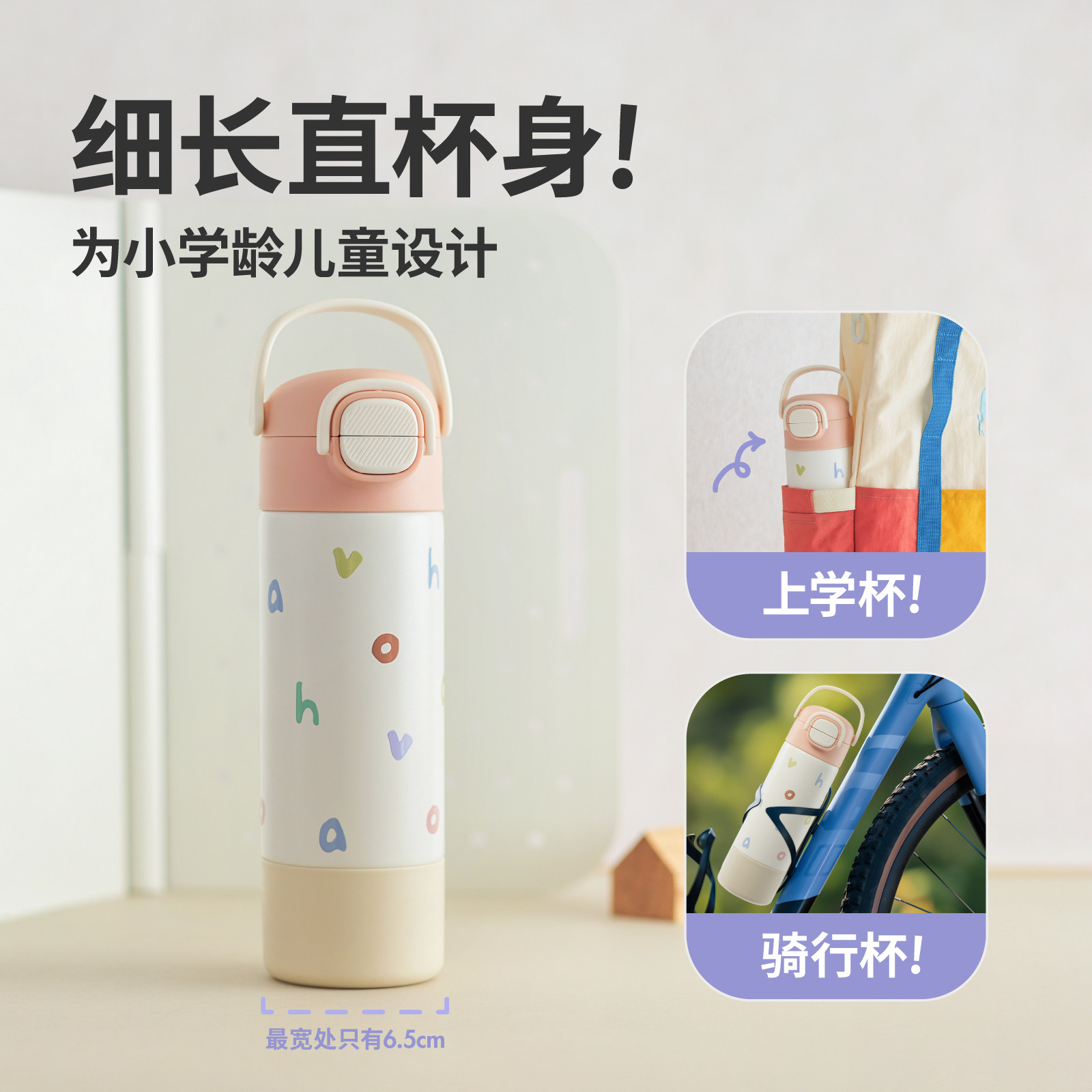 好好同学保温杯水杯女新款2025高颜值学生专用水壶男上学细长吸管