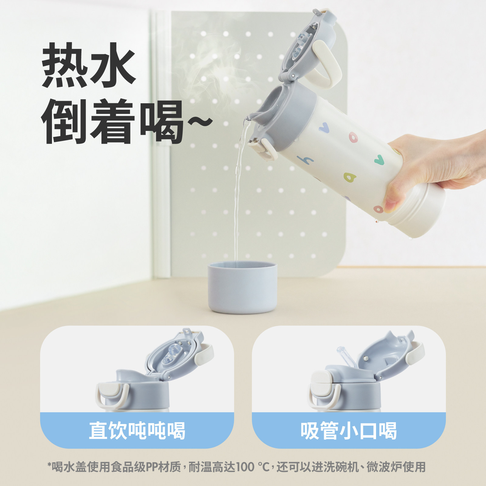 杯具熊轻暖双饮保温杯高颜值情侣水杯纯色简约学生上学吸管杯新款