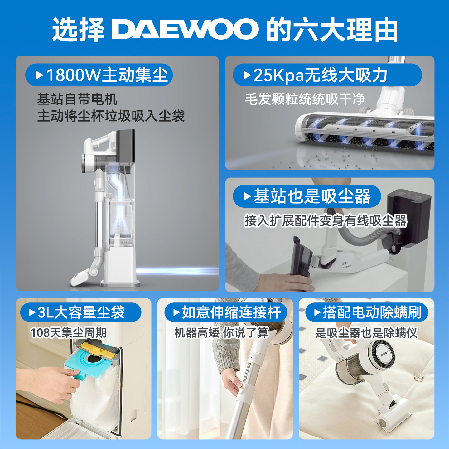 DAEWOO大宇自动集尘无线基站吸尘器家用大吸力吸猫毛智能吸尘机