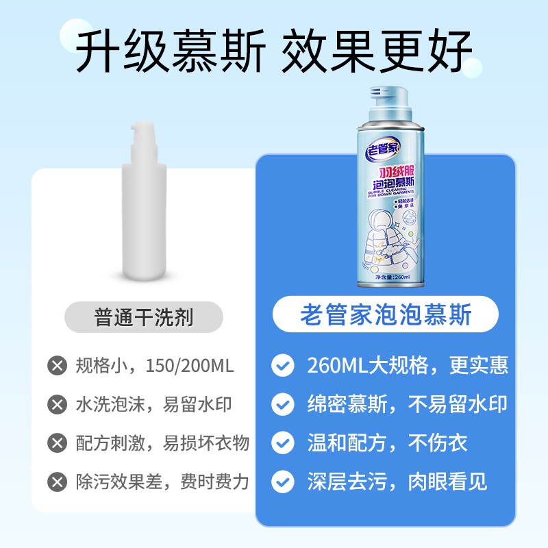 老管家羽绒服清洗剂清洁剂免水洗衣服干洗免洗蓬松慕斯油渍油污