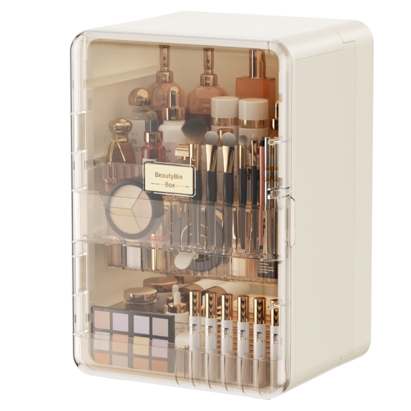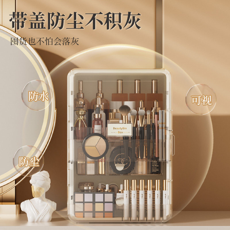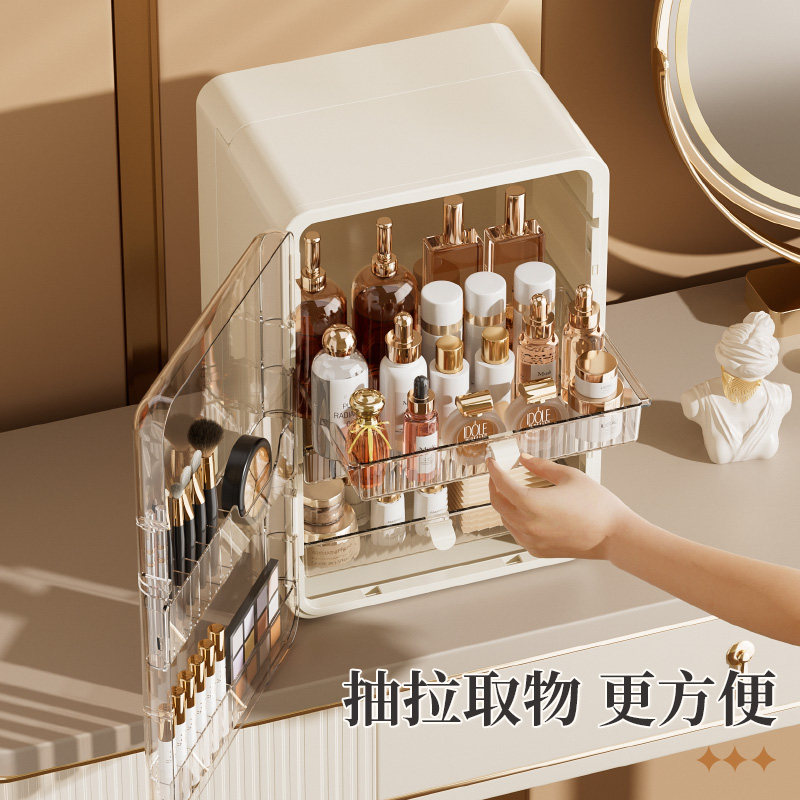 轻奢风化妆品收纳盒防尘梳妆台护肤品桌面抽屉置物架大容量化妆盒