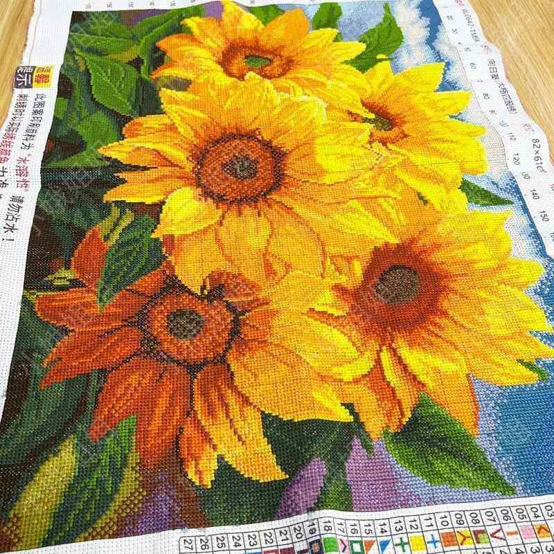 欣欣向荣十字绣成品不带框纯手工出售绣好2025新款客厅高端向日葵